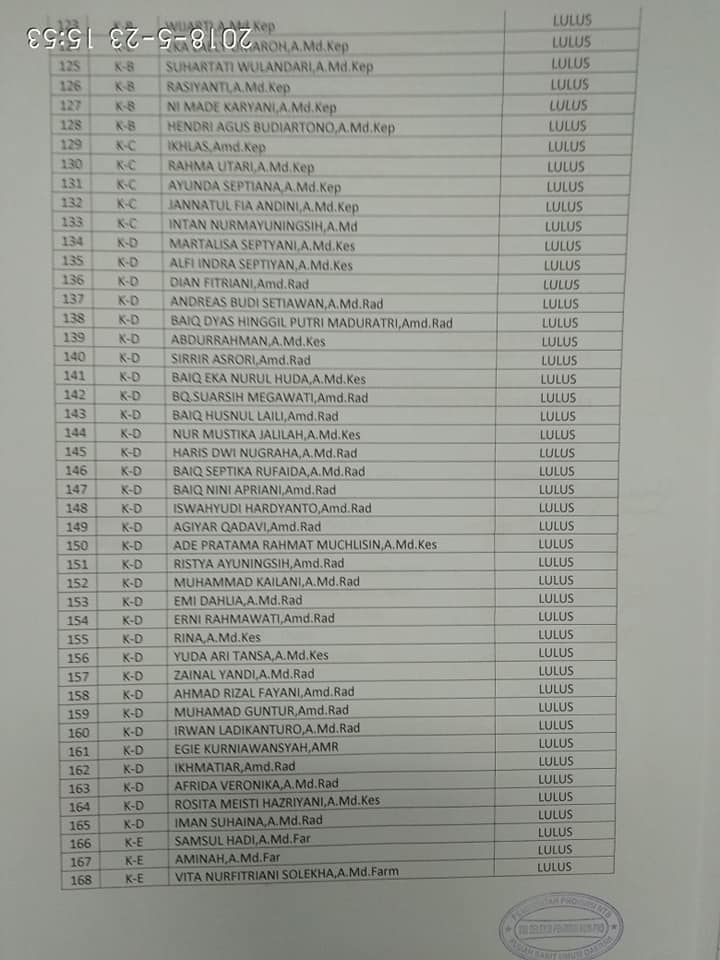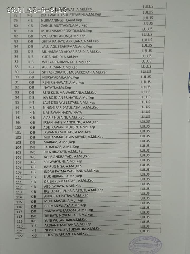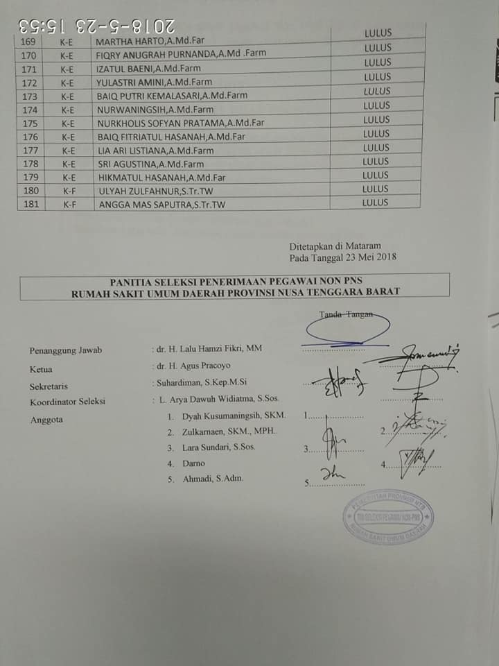 Pengumuman Hasil Verifikasi Berkas Administrasi Seleksi Penerimaan Pegawai Non PNS BLUD RSUD Provinsi NTB Tahun 2018 May 24, 2018 admin