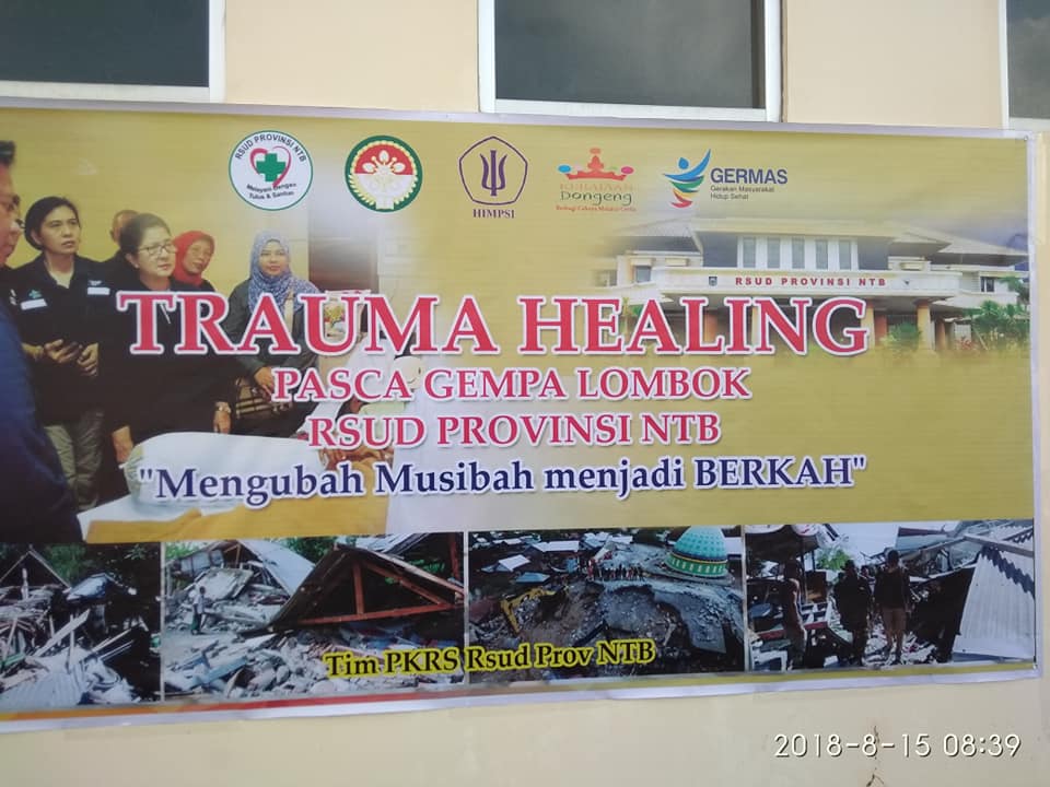 Tim PKRS, Psikolog dan Fisioterapis rumah sakit mulai menggelar trauma healing secara kelompok di taman parkir gedung Fasum.