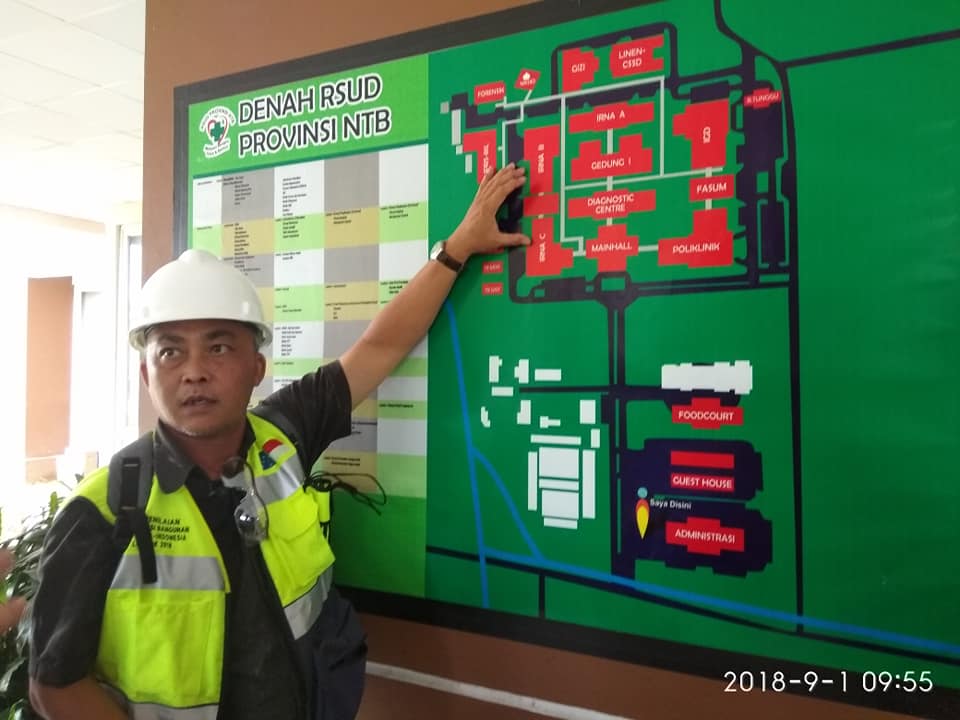 Alhamdulillah kondisi gedung RSUD Provinsi NTB secara umum masih baik, hal ini juga dipertegas disampaikan pula oleh Kepala Bagian TU “Suhardiman,S.Kep, MSi’ dan teknisi gedung RSUD Provinsi NTB ” Bambang Parkoso, ST” yang mendampingi tim Assesmen selama melaksanakan pemeriksaan.