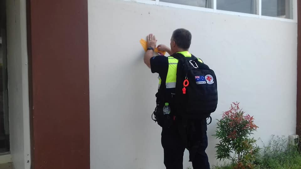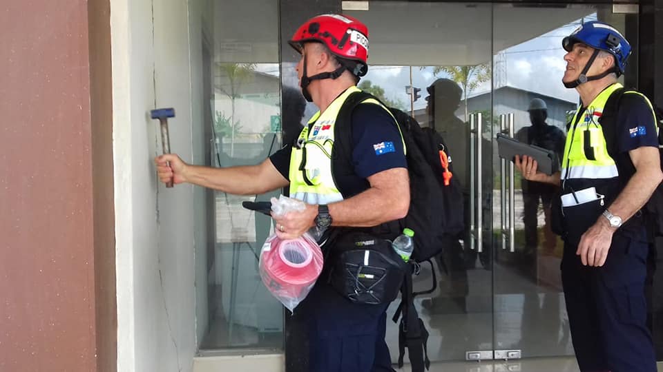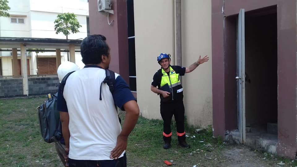 Ahli bangunan Australia (Mikhael dan Toni) yang didampingi Tim PUPR Provinsi NTB secara detail melakukan pemeriksaan setiap gedung di RSUD Provinsi NTB.