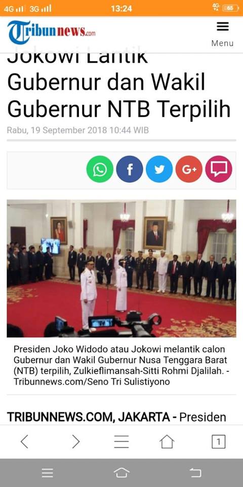 Hari ini (19/09) Direktur RSUD Provinsi NTB dr H. Lalu Hamzi Fikri, MM, MARS dapat menghadiri hari bersejarah dimana tepat hari ini Pelantikan Gubernur NTB di Istana Negara Jakarta.