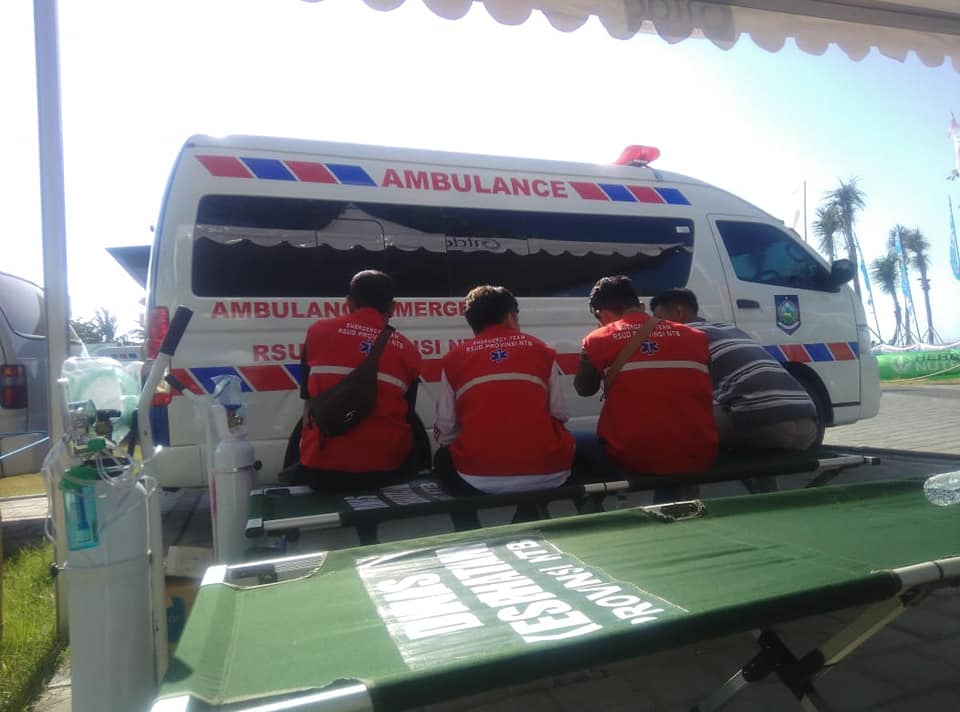Tim Eksternal Kesehatan RSUD Provinsi NTB hadir di even triathlon Mandalika di Kuta Lombok Tengah.