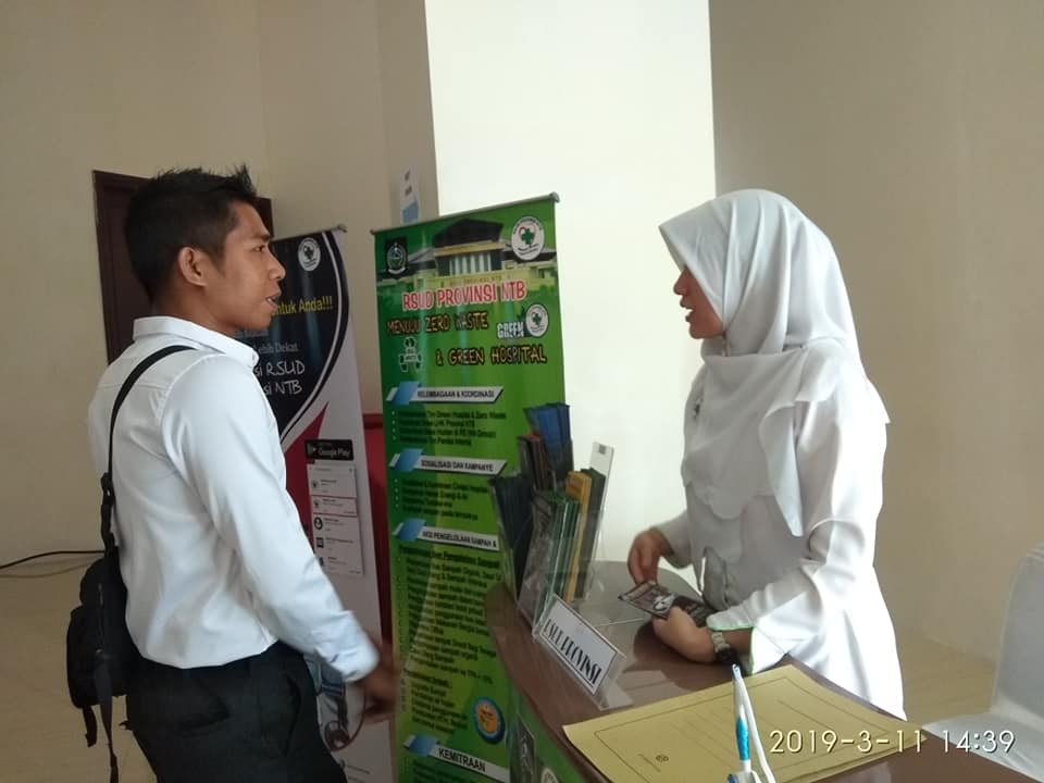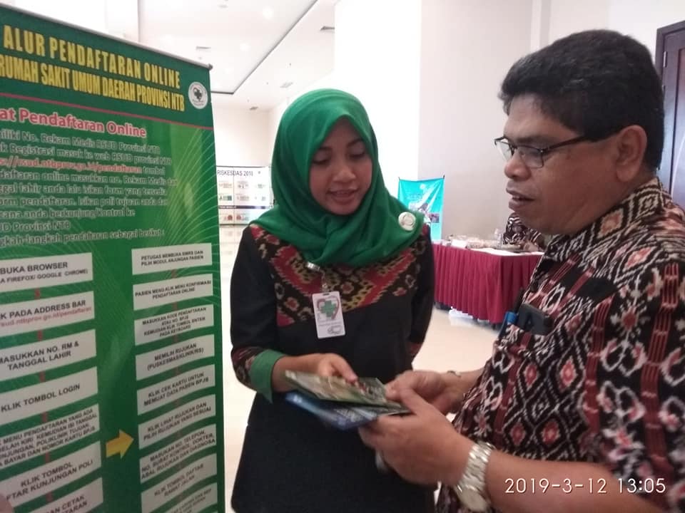 Di hari kedua ini, petugas tampil fulltim dengan melibatkan Tim Pkrs Rsud Provinsi Ntb. Informasi yang menjadi perhatian pengunjung adalah terkait pendaftaran online rawat jalan yang baru diluncurkan.