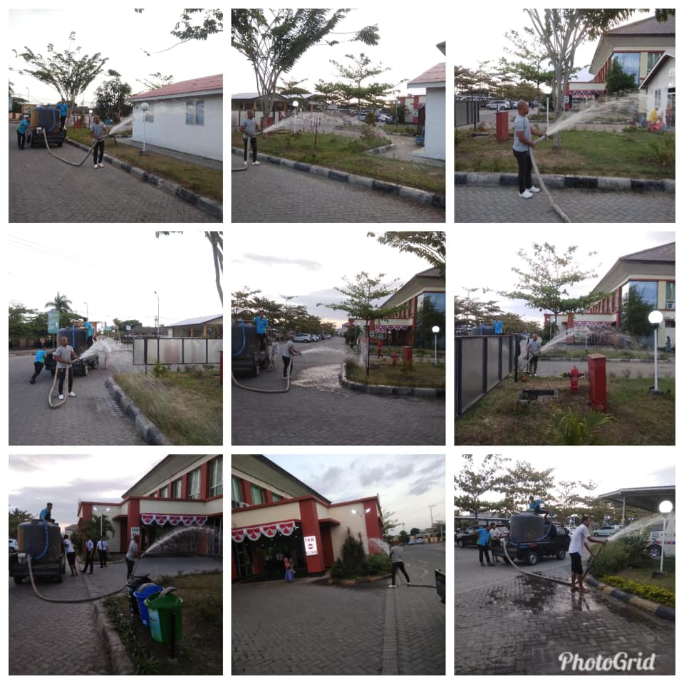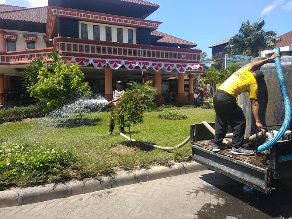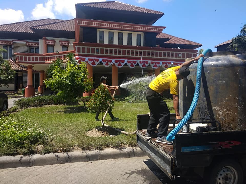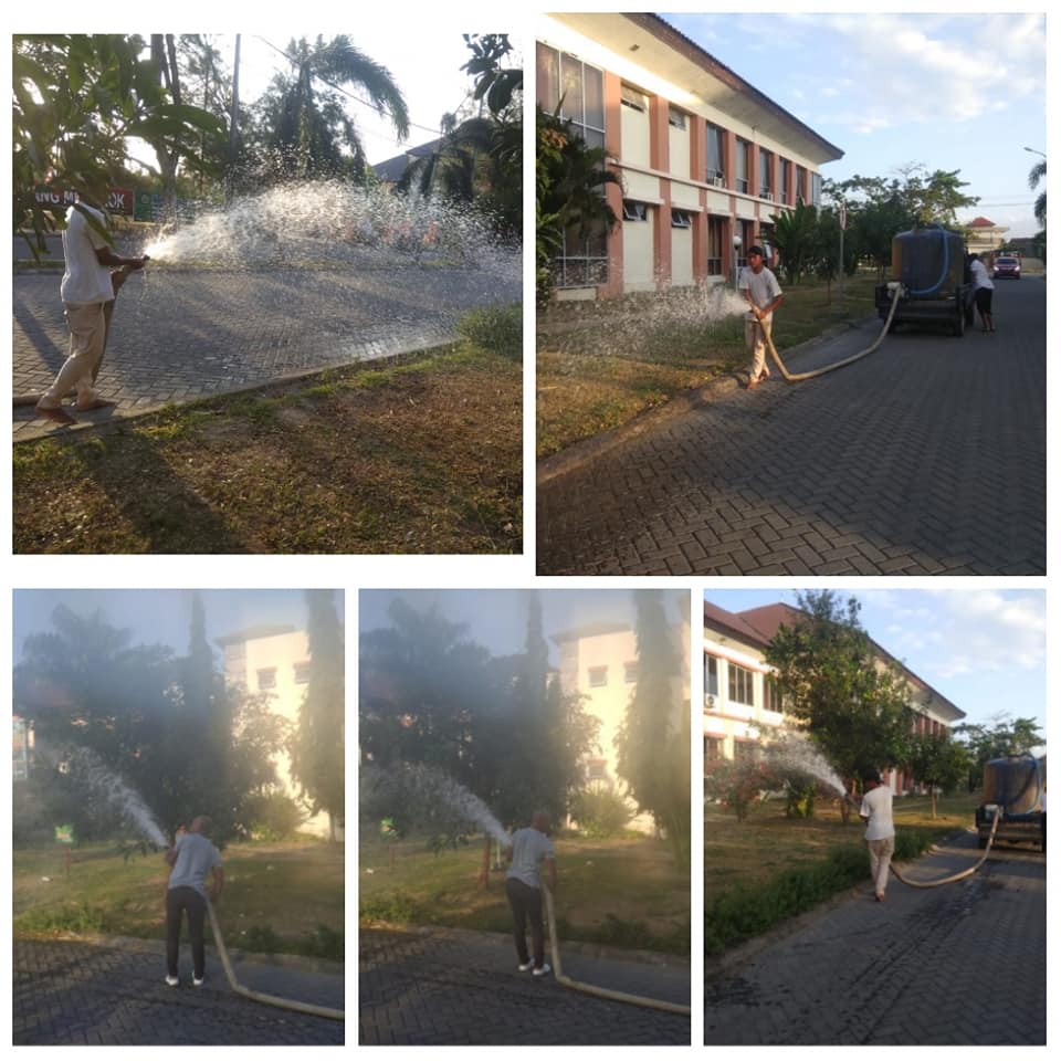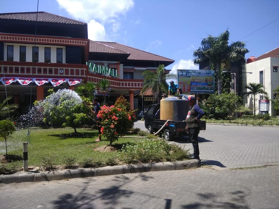 Dalam menyikapi musim kemarau saat ini, tim Green Hospital mengerahkan water mobile yang diciptakan untuk membantu penyiraman di lingkungan Rumah Sakit.