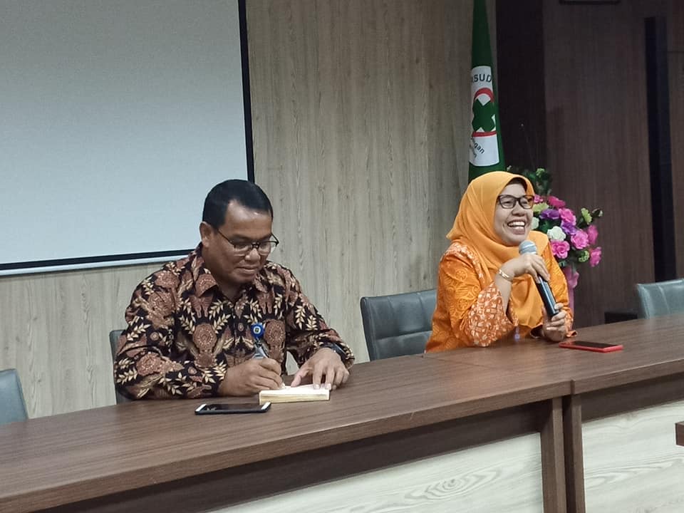 Penerimaan Rombongan UPTD RSUD Tengku Rafian yang berjumlah 11 (sebelas) orang yang diketuai oleh H. Helmi, SKM, M.Kes ini dilakukan di Aula Rinjani. Dalam Sambutan selamat datangnya Wadir Umum dan Keuangan, Henny Hardini,SKM, MPH menyampaikan beberapa ikhtiar rumah sakit menuju RS Wisata.