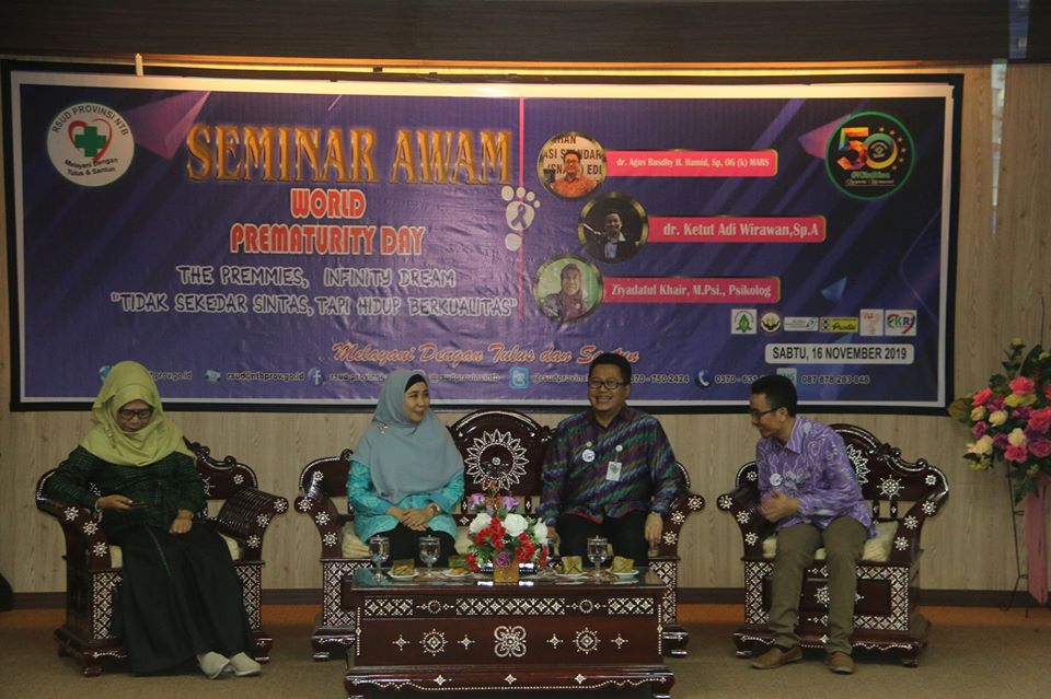 Dalam sambutannya Ibu Wagub pada Pembukaan Seminar Awam tentang Bayi Prematur di RSUD Provinsi NTB (16/11) Kematian Bayi merupakan Salah Satu Pekerjaan Rumah (PR) Besar di NTB sehingga kita merasa perlu edukasi tentang Penanganan Bayi Prematur seluas-luasnya disebarkan kepada Masyarakat, tidak hanya kepada Ibu Bayi Prematur tetapi Juga bagi Calon-Calon Ibu.”