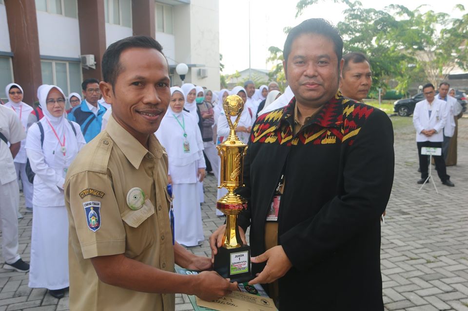 Direktur RSUD Provinsi NTB, dr.H.Lalu Hamzi Fikri, MM, MARS menyerahkan Piala dan Hadiah Pembinaan kepada Para Juara Turnamen Futsal Direktur Cup dalam rangka HUT RSUD Provinsi NTB ke 50 (25/11)