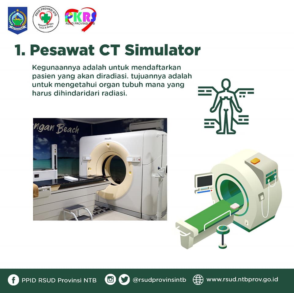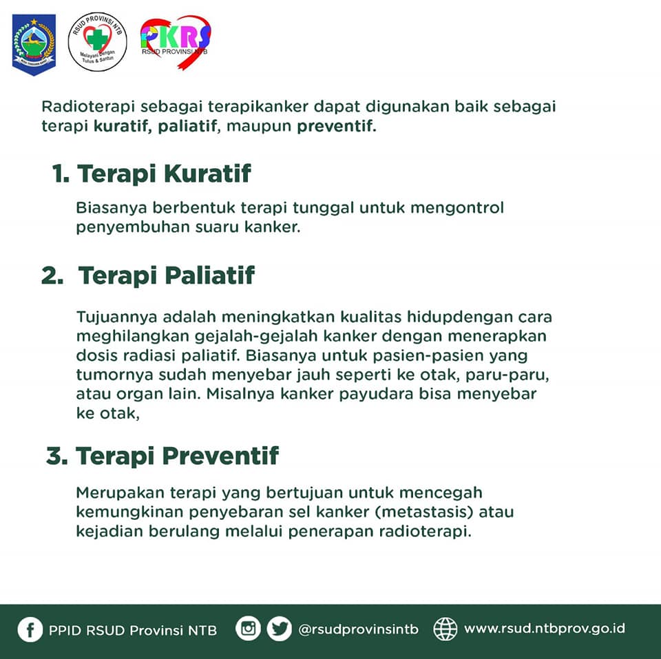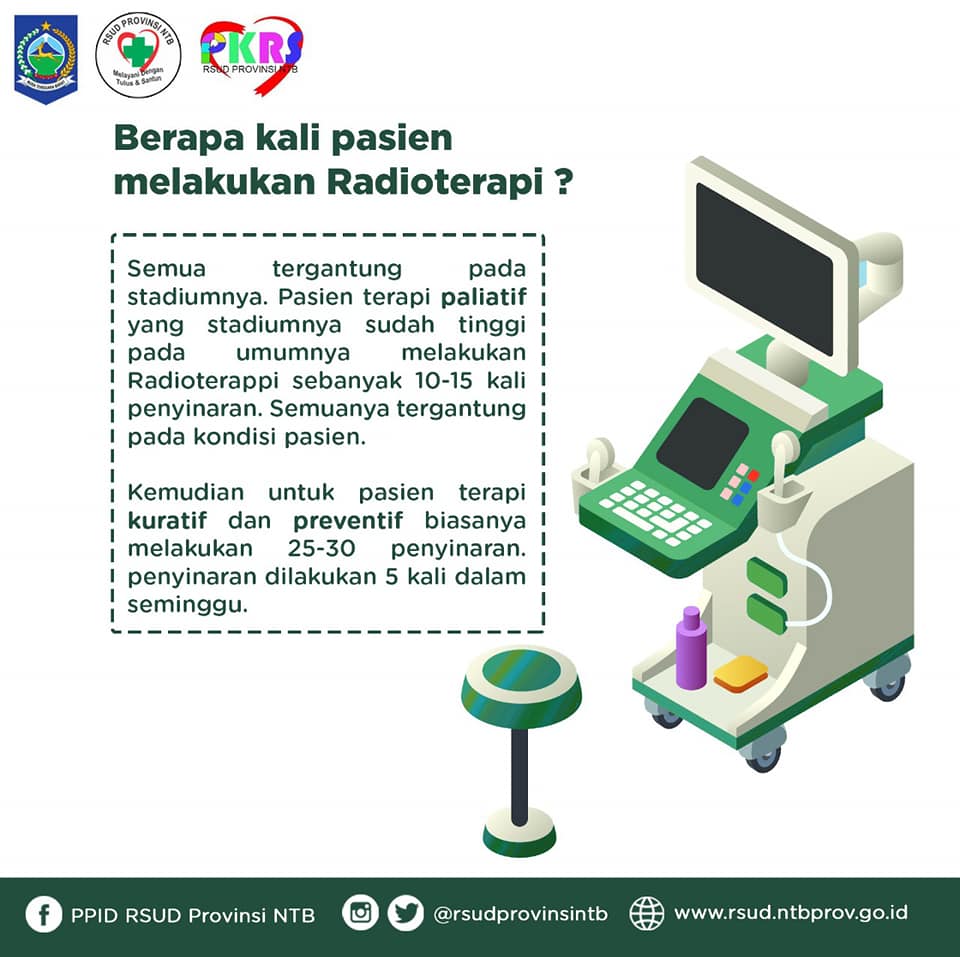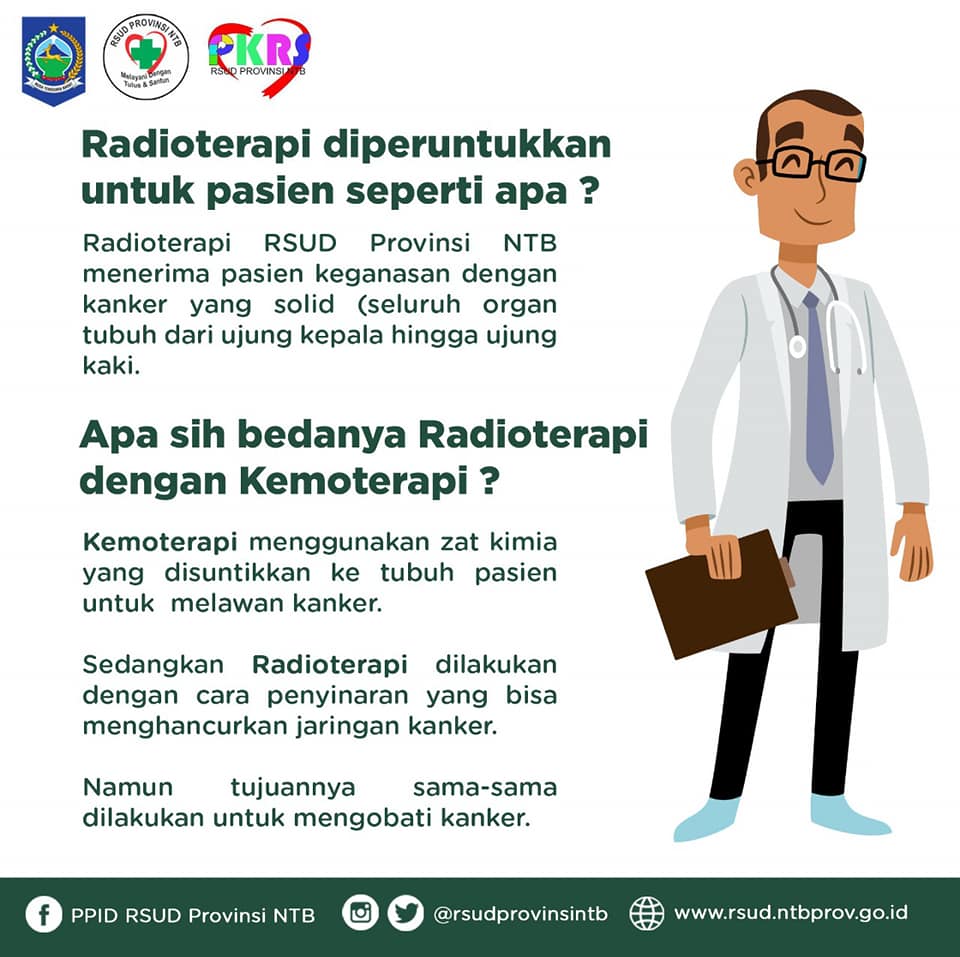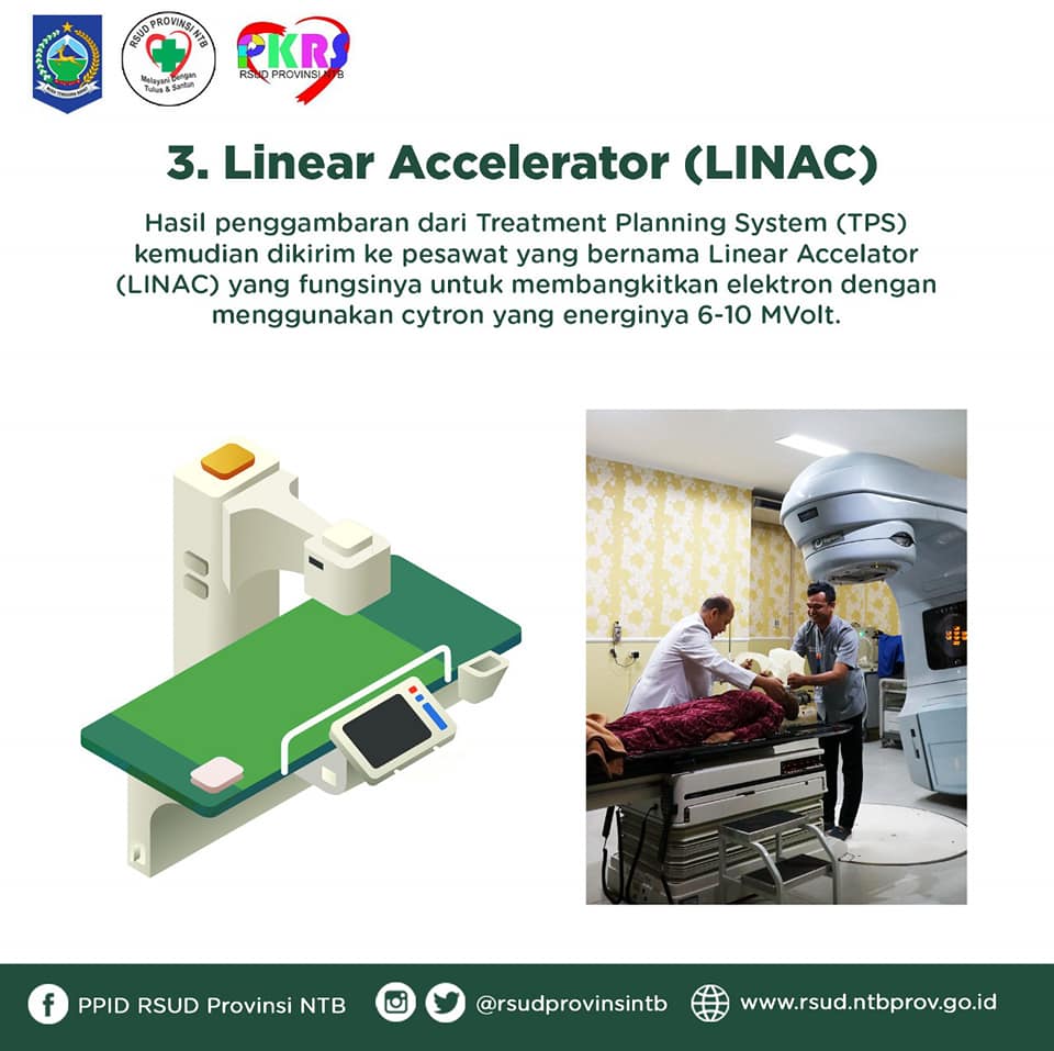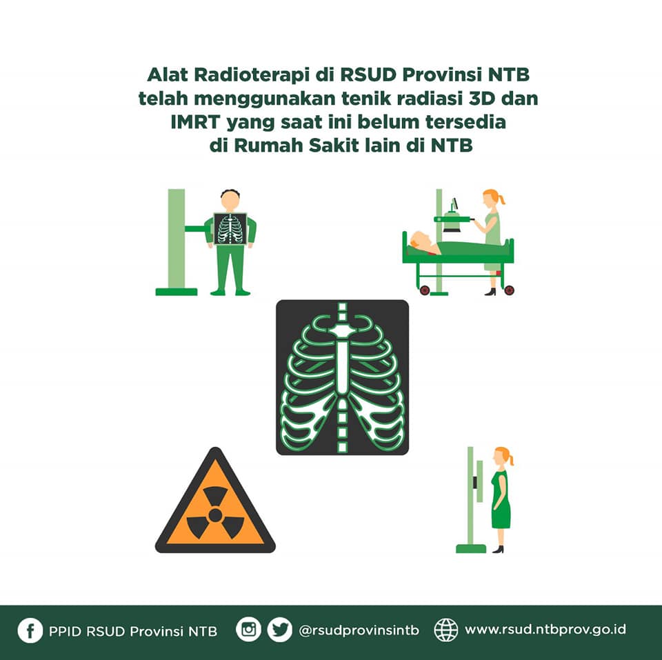 Eiitttss.. Jangan khawatir untuk yang mau melakukan Radioterapi, RSUD Provinsi NTB telah hadir dan siap membantu untuk pengobatan kanker melalui Radioterapi serta alat-alat yang telah menggunakan teknik radiasi 3D dan IMRT satu-satunya di NTB loh… 😉