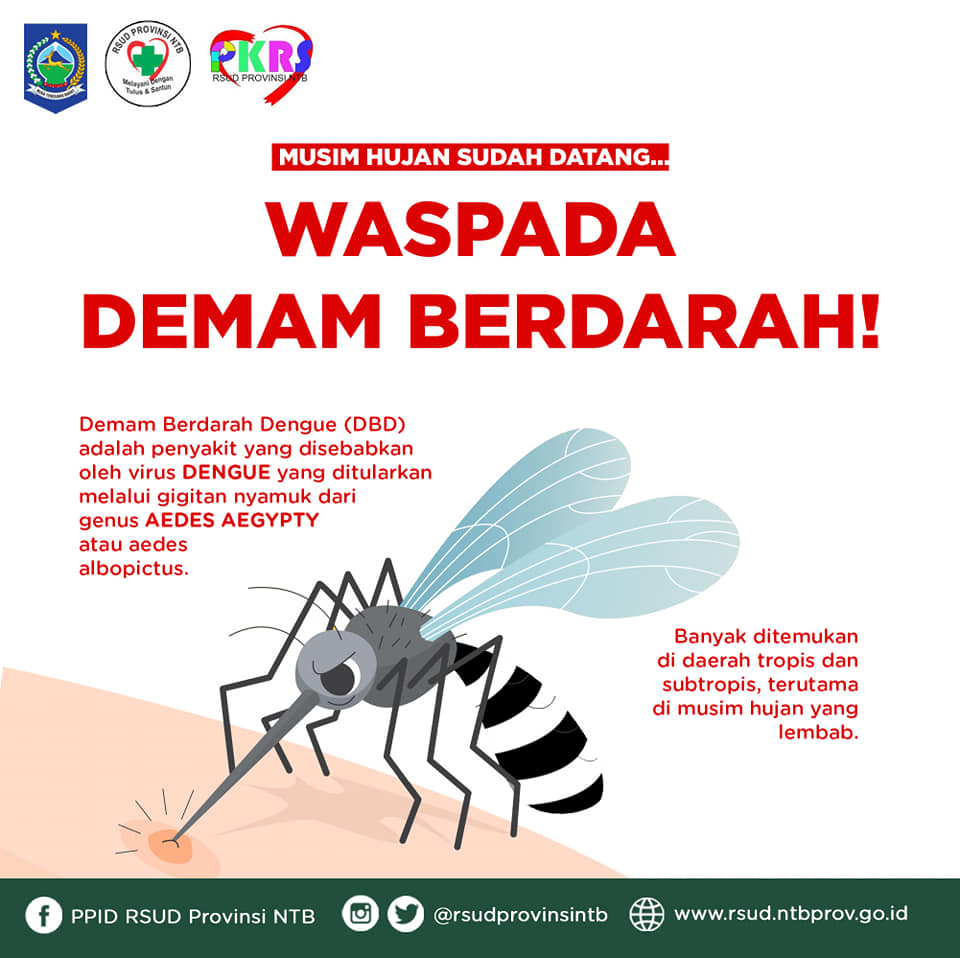 Mari bersama kita waspadai penyakit yang sering terjadi di musim hujan saat perkembangbiakan nyamuk meningkat yaitu, Demam Berdarah.