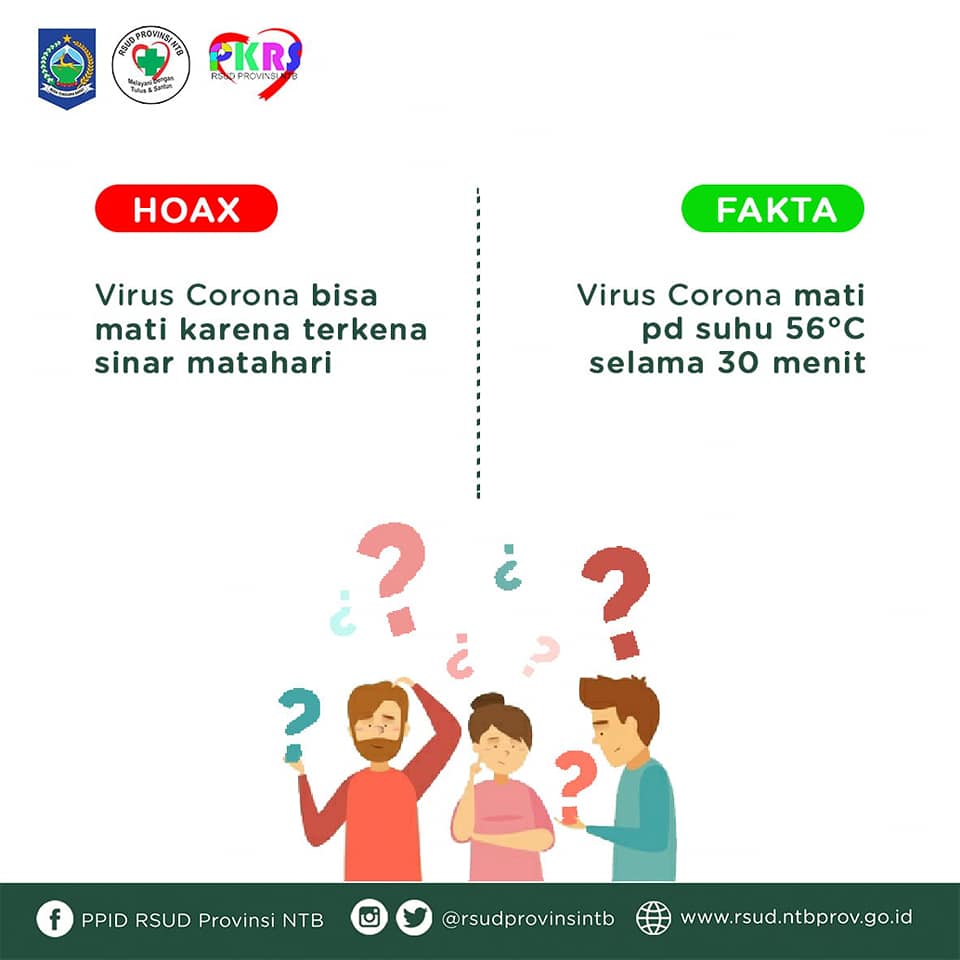 Nah, untuk mengatasi masalah tersebut, Healthy People harus tahu dan dapat membedakan informasi HOAX atau FAKTA baik itu dari penularan, penyebaran dan pencegahannya. 🤗