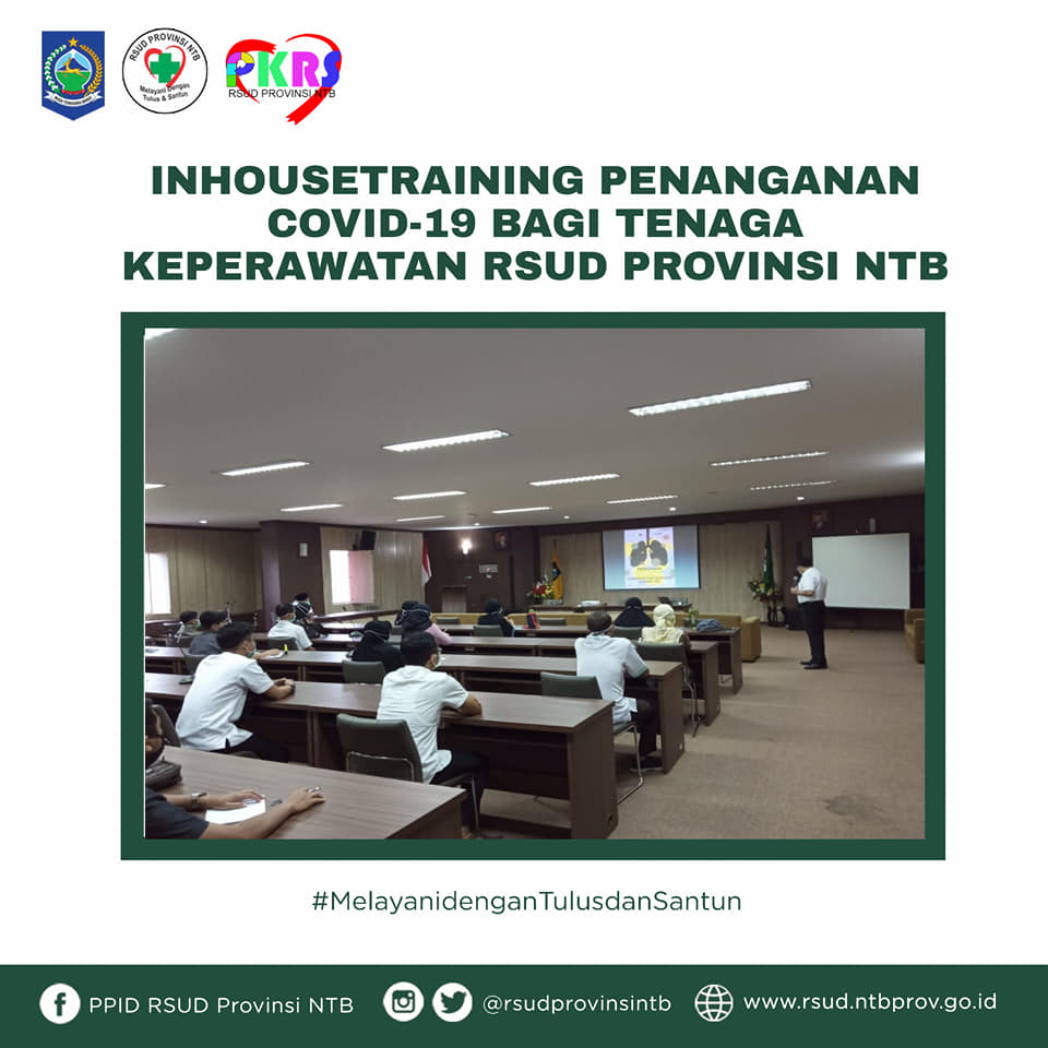 Inhouse training ini terselenggara untuk memenuhi tenaga keperawatan yang akan dilibatkan dalam penanganan PDP Covid -19 sesuai dengan rencana pengembangan jumlah ruang isolasi di Rumah Sakit Umum Daerah Provinsi NTB.