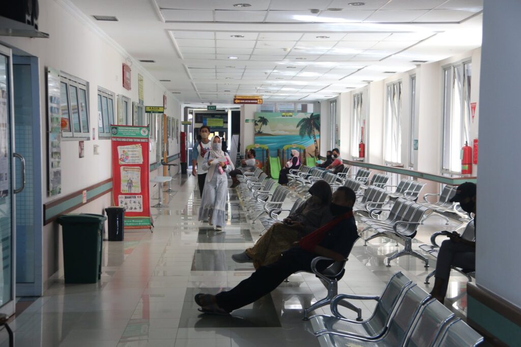 Sejak diberlakukannya protokol kesehatan memang tempat duduk di ruang tunggu dan pelayanan di atur berjarak satu sama lain.
