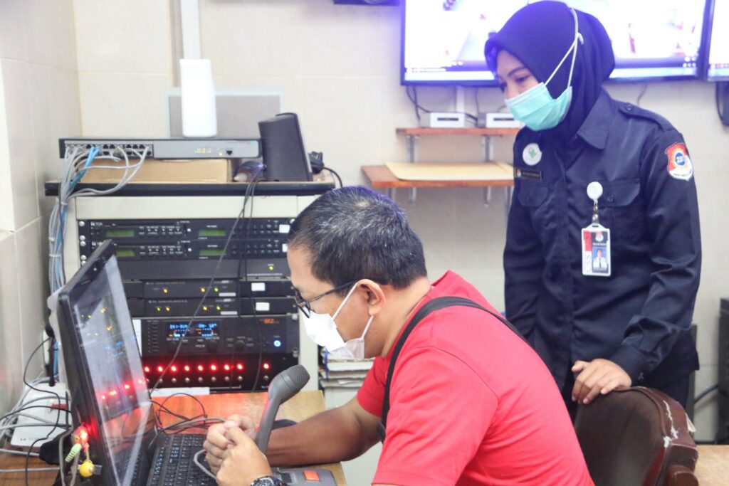 Ns.Muhammad Sunarto, M. Kep,. Sp.Kep.J salah satu anggota Tim DKJPS juga melakukan observasi ke ruang jaga Isolasi untuk melihat respon pasien isolasi melalui layar monitor CCTV.