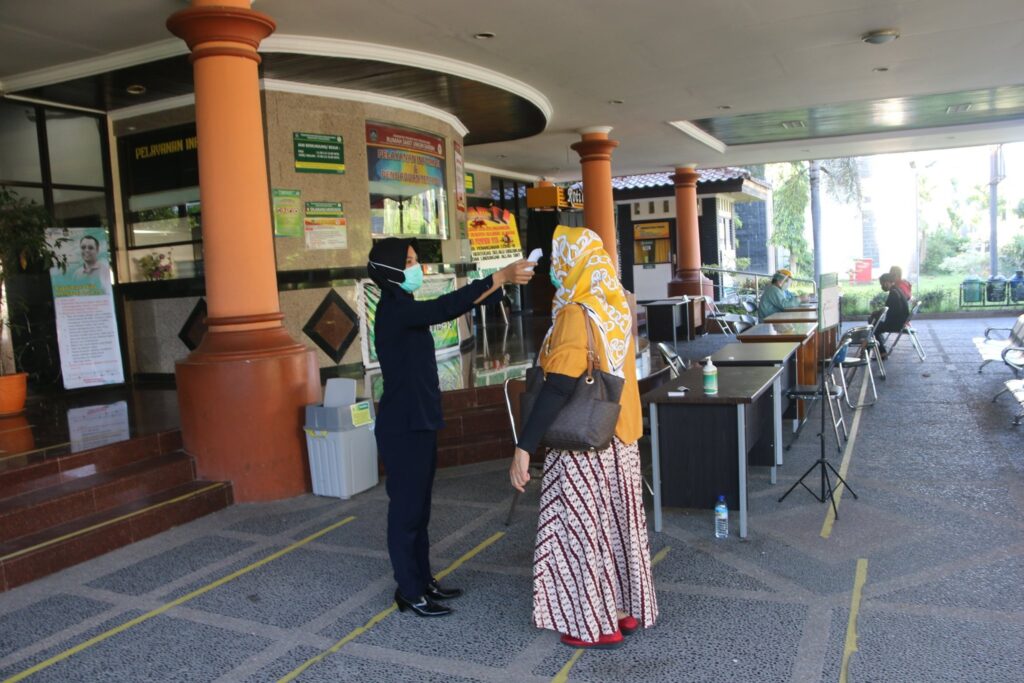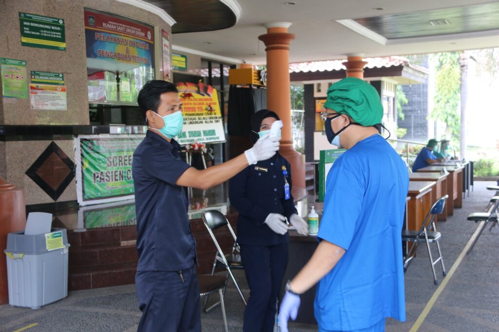 RSUD Provinsi NTB berikhtiar memberikan kenyamanan bagi pengunjung dan pengguna layanannya. Salah satu protokol kesehatan yang harus dipenuhi saat memasuki areal gedung Rumah Sakit adalah pengukuran suhu tubuh.