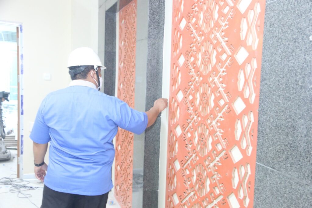 Direktur melakukan pengecekan ruangan yang sedang dalam finishing dan pembersihan. Direktur RSUD Provinsi NTB, dr. H. Lalu Hamzi Fikri, MM, MARS langsung melakukan briefing kepada seluruh unit dan petugas terkait dalam pelayanan di gedung baru ini. Langkah langkah strategis dan prioritas bisa dilakukan dalam beberapa hari ke depan menjelang kegiatan soft launching.