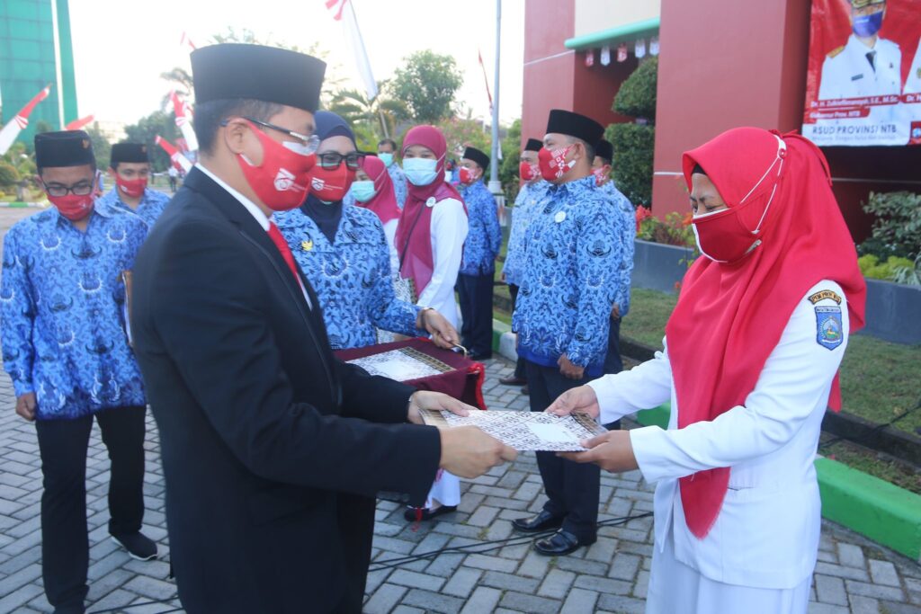 Upacara Bendera Hari Kemerdekaan Republik Indonesia ke 75 berlangsung di Rumah Sakit Umum Daerah Provinsi Nusa Tenggara Barat (17/08)