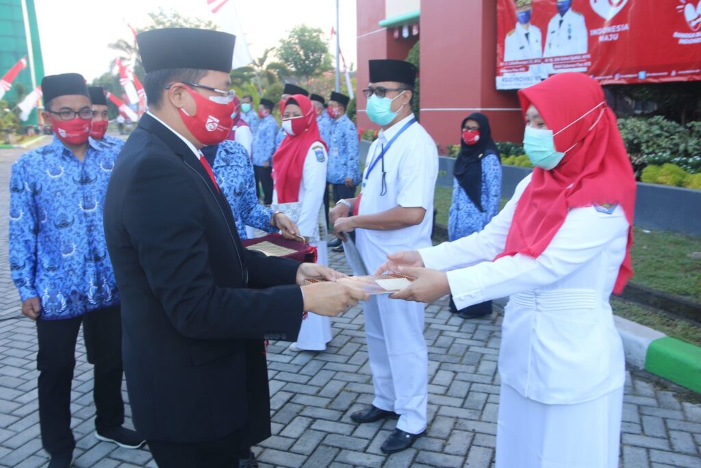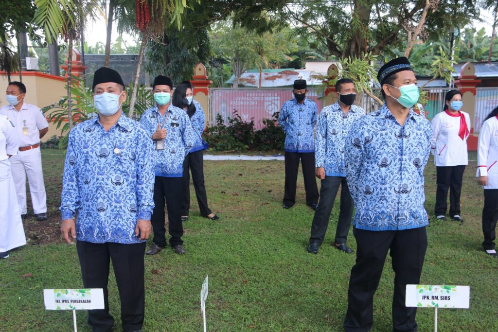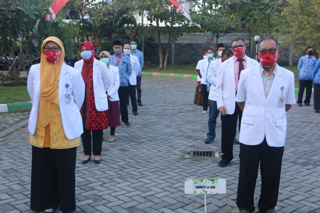 Upacara yang dihadiri oleh Jajaran Direksi, Pejabat Struktural, Kepala Instalasi, Ketua Komite Medik, Ketua SPI, Ketua Devisi dan Supervisor ini berlangsung khidmat dengan penerapan protokol kesehatan yang ketat.