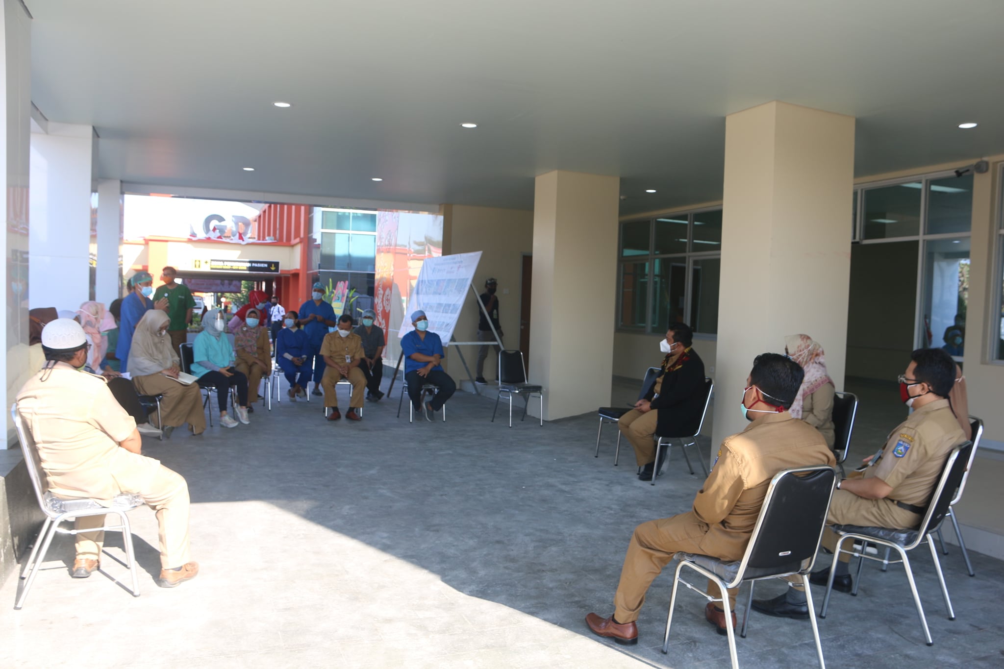 Konsolidasi untuk menindaklanjuti rencana mulainya pelayanan pasien COVID 19 di gedung baru. Skenario layanan menjadi bahan diskusi hangat diantara peserta konsolidasi.
