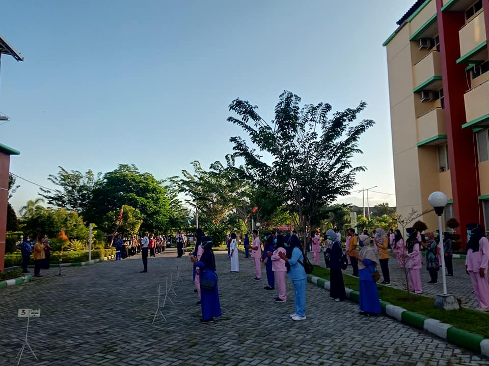 Wakil Direktur Pelayanan, dr. Agus Rusdhy Hamid, Sp.OG (K) MARS berbagi informasi terkait pentingnya radio intervensi menggantikan sesi Kepala Instalasi Radiologi yang berhalangan hadir apel pagi ini (25/08).