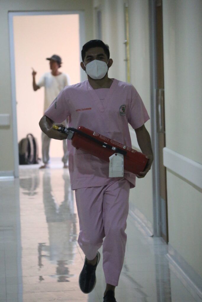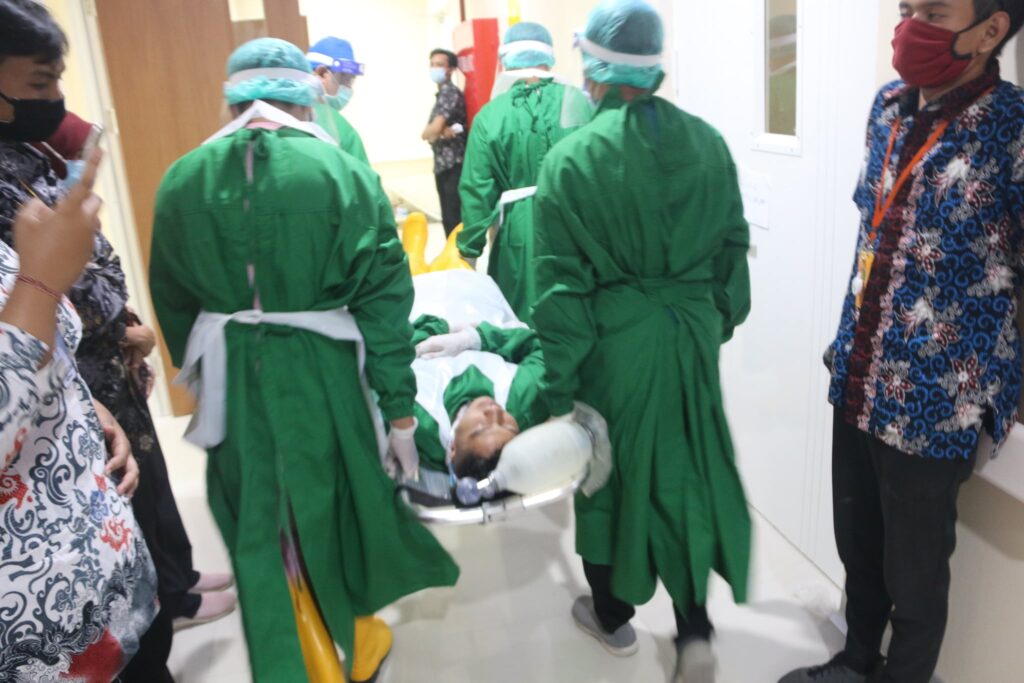Kegiatan ini bertujuan untuk meningkatkan kesiapsiagaan seluruh personel baik tenaga medis maupun non medis yang bertugas di Gedung Pelayanan Covid dan Trauma Centre bila terjadi bencana. Dengan adanya simulasi ini diharapkan akan semakin menambah skill dan penguasaan teknik dalam memberikan pertolongan jika sewaktu-waktu terjadi bencana.