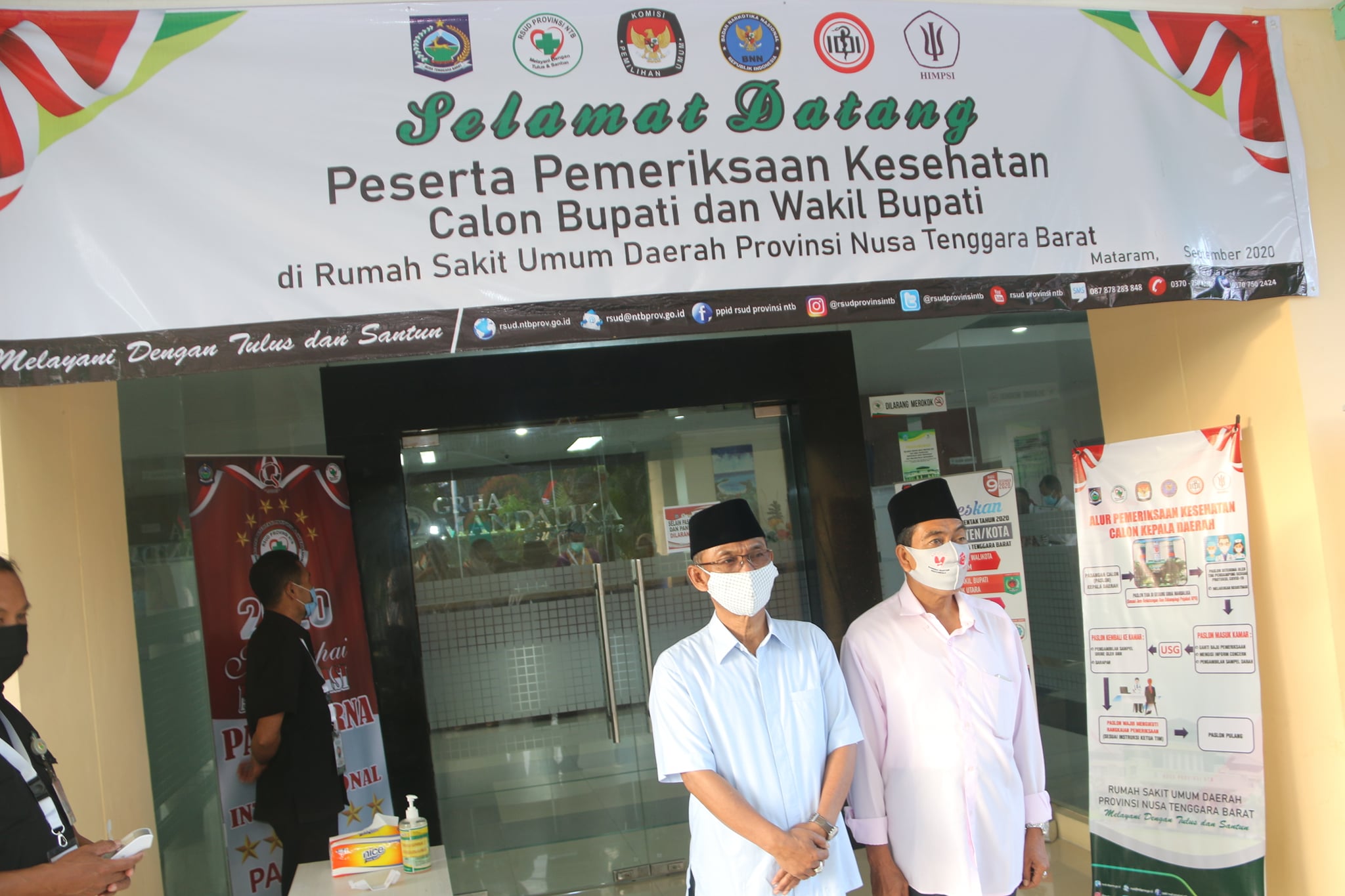 Mengikuti protokol kesehatan yang telah ditentukan, pasangan calon yang tidak menggunakan masker bedah (surgical mask) difasilitasi masker bedah dari pihak rumah sakit untuk digunakan selama pemeriksaan. Protokol kesehatan yang ditetapkan oleh pihak RSUD Provinsi NTB untuk paslon adalah penggunaan APD level 2 selama pemeriksaan kesehatan berlangsung.