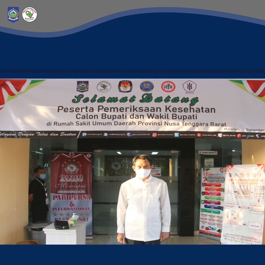 Sebanyak 5 pasangan calon (paslon) kepala daerah hari ini melakukan pemeriksaan kesehatan di Grha Mandalika RSUD Provinsi NTB. 2 paslon berasal dari Lombok Tengah, 2 paslon berasal dari Sumbawa dan 1 paslon berasal dari Lombok Utara.