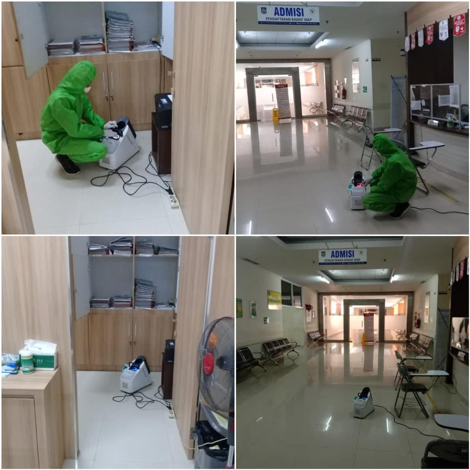 Instalasi Kesehatan Lingkungan, Komite Pemcegahan dan Penanganan Infeksi (PPI) dan K3RS juga dituntut untuk bisa melakukan modifikasi/rekayasa lingkungan di tempat tugas masing-masing. Untuk menciptakan ruangan kerja yang aman bagi petugas kesehatan dan pengguna layanan di Rumah Sakit maka selain pemenuhan sarana cuci tangan, masker, dan pembatasan jarak, petugas juga melaksanakan Desinfeksi Ruangan Rumah Sakit.