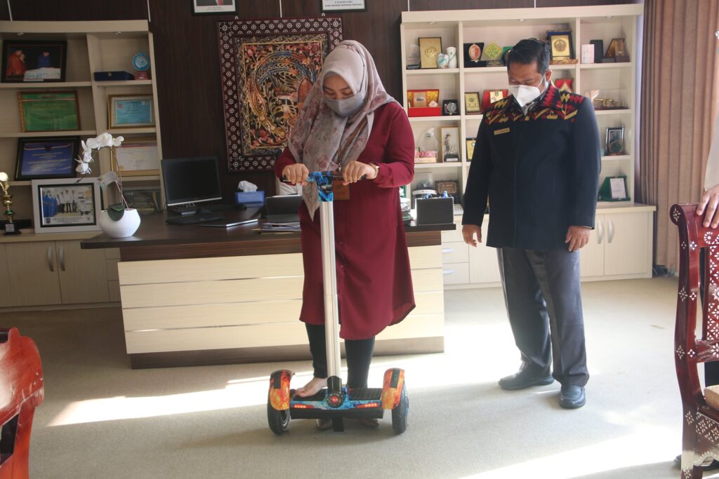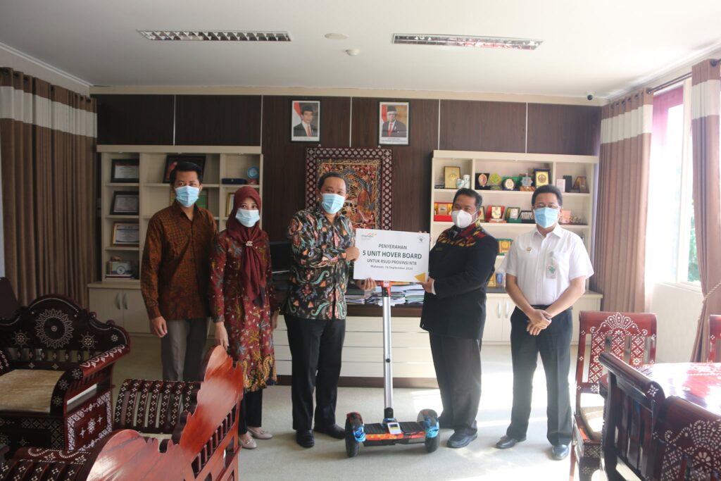 Penyerahan 5 (lima) unit Hover Board ini langsung diserahkan oleh Sukma Dwie Priardhi Area Manager Bank Mandiri Syariah kepada Direktur dr. H. Lalu Hamzi Fikri, MM, MARS disaksikan oleh Nur Intan, Branch Manager Bank Mandiri Syariah dan Jajaran Direksi.