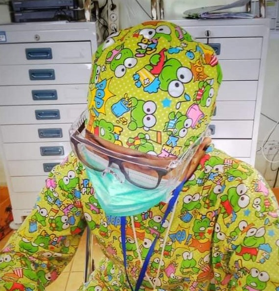 Dalam kolase foto dibawah ini tampak beberapa Dokter Spesialis terekam kemera sedang mengisi rekam medis dengan menggunakan APD level 2 dan 3. Kenapa ??