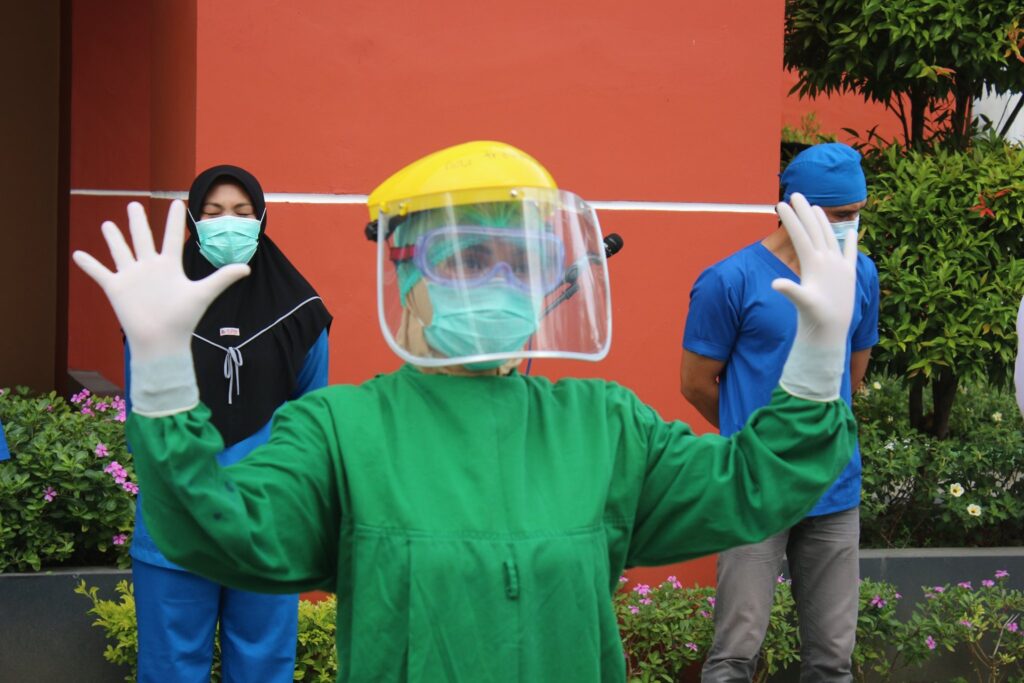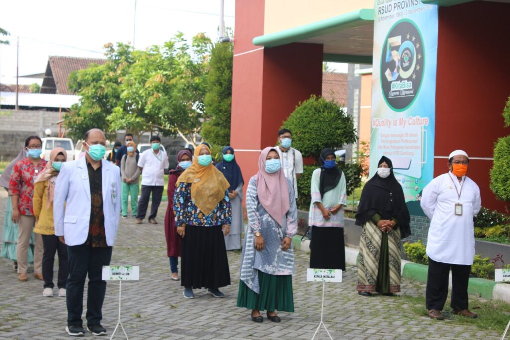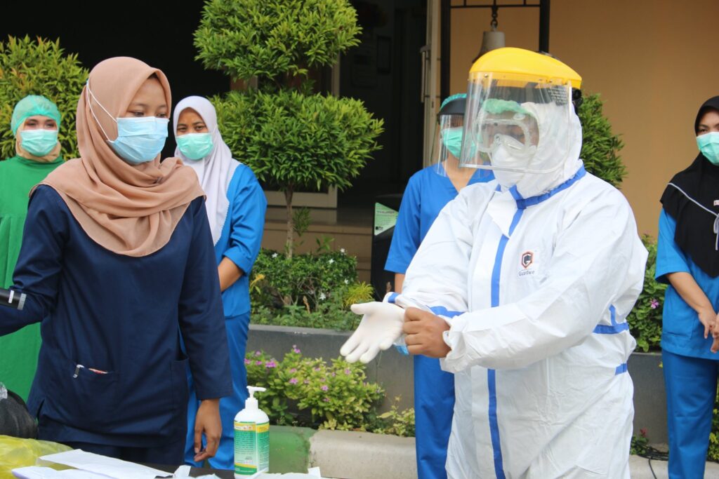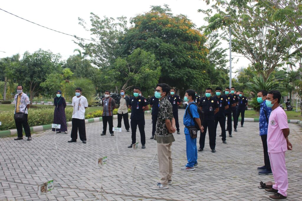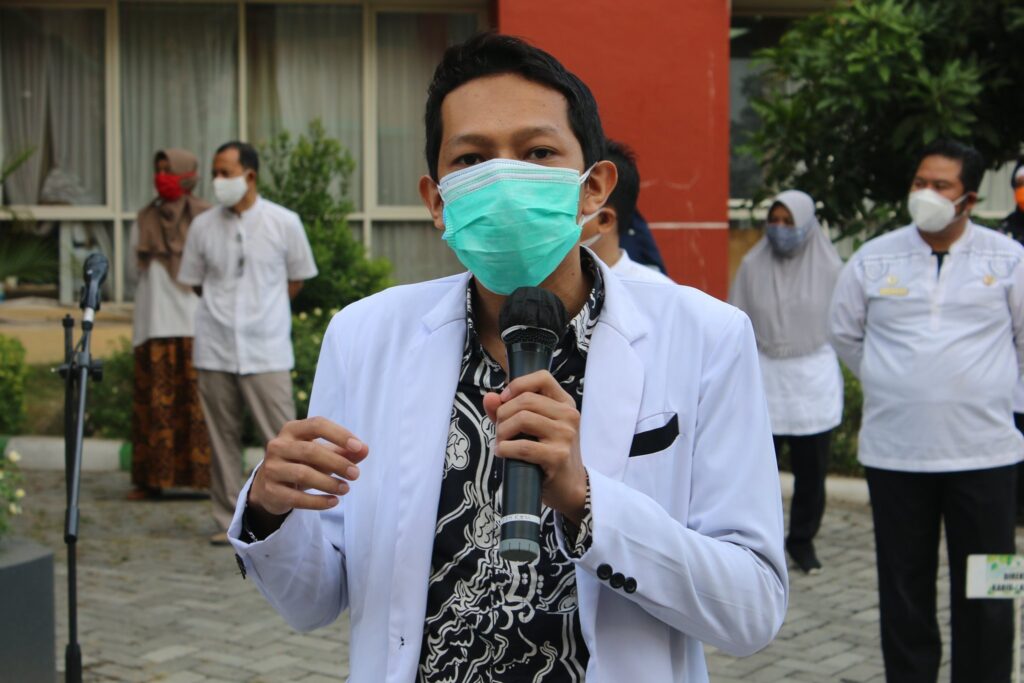Hari ini (09 September 2020) giliran Instalasi Rawat Inap (IRNA) yang mengisi apel pagi berbahasa Inggris. Adapun tema yang diangkat oleh Kepala Instalasi Rawat Inap, dr. Adi Wira dan tim adalah “Pemakaian dan Pelepasan Alat Pelindung Diri (APD)”.