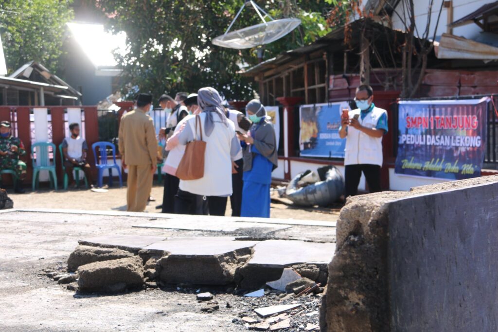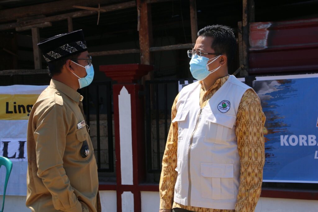 Rombongan yang dipimpin oleh Wadir Pelayanan dr. Agus Rusdhy Hamid, Sp. OG (K) MARS melihat secara dekat kondisi korban dan lokasi terdampak bencana tersebut.