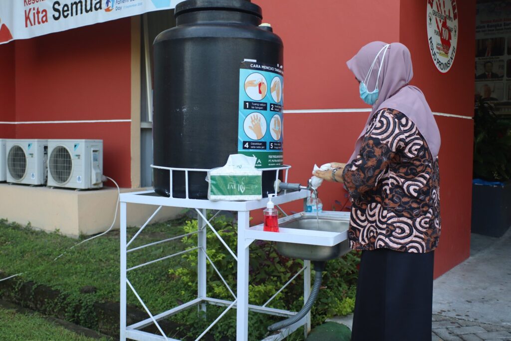 Budaya mencuci tangan menggunakan sabun dan air mengalir perlu selalu dipraktekkan bagi setiap orang dimanapun mereka berada, termasuk tatkala berada di areal rumah sakit.