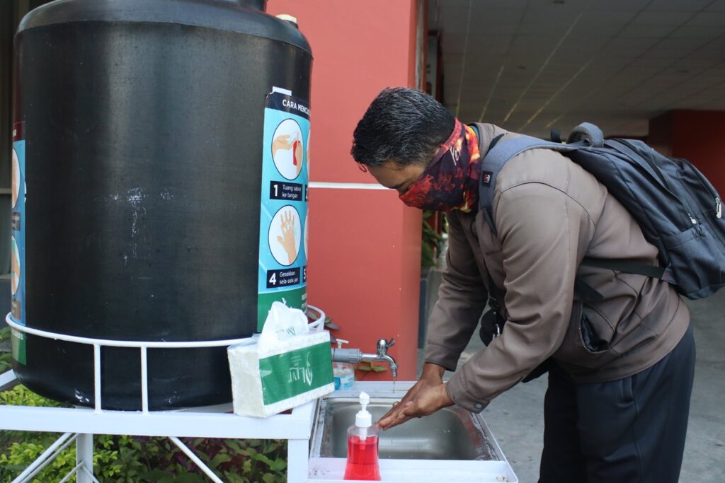 Dianjurkan untuk mencuci tangan selama 20 detik, atau lebih mudah dengan menyanyikan lagu “selamat ulang tahun” sebanyak 2 kali. Bila tidak terdapat sabun dan air mengalir, dapat menggunakan hand sanitizer dengan kandungan alkohol minimal 60%.
