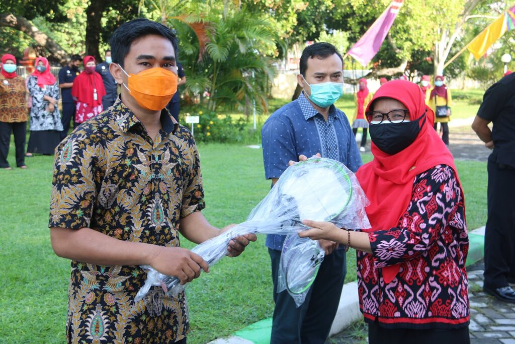 Masing-masing Wakil Direktur menyerahkan hadiah kepada para pemenang lomba. Wadir Pelayanan, dr. Agus Rusdhy Hamid, Sp.OG (K) MARS menyerahkan hadiah pemenang lomba video cuci tangan, Wadir Umum dan Keuangan, Henny Hardini, SKM, MPH menyerahkan hadiah pemenang lomba badminton serta Wadir SDM dan Diklit, dr. Oxy Tjahjo Wahjuni, Sp.EM menyerahkan hadiah bagi pemenang game on-line.