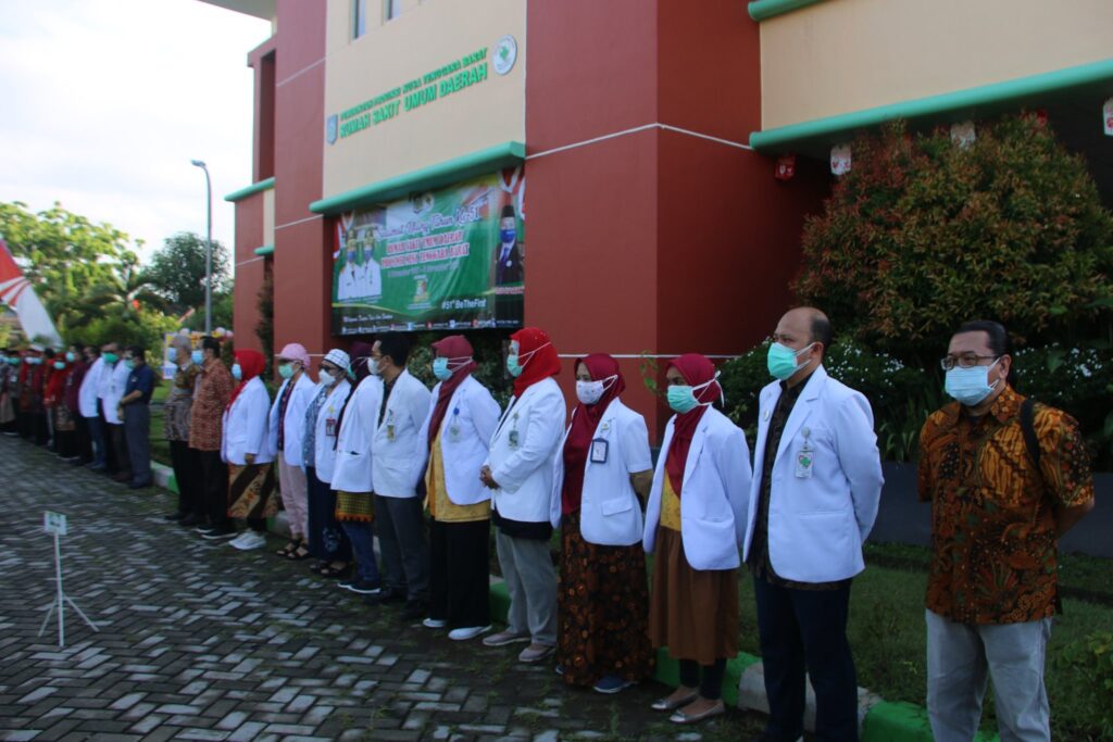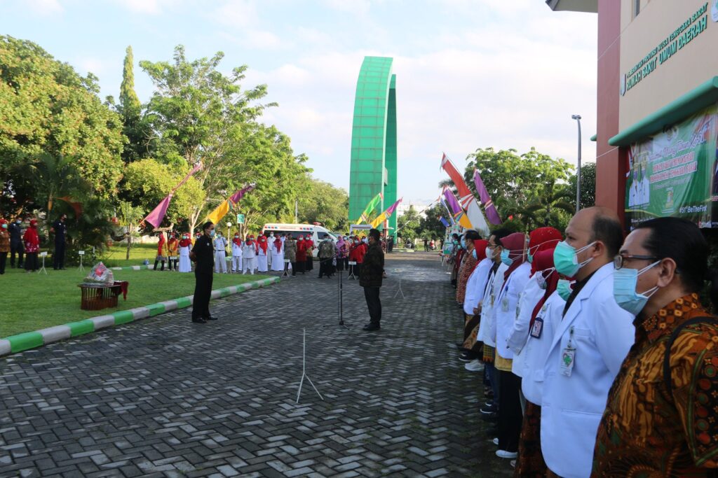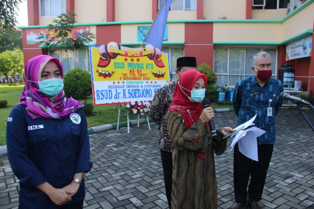 Apresiasi dan ucapan selamat disampaikan oleh Direktur dr. H. Lalu Hamzi Fikri, MM, MARS saat menjadi Pembina Apel Siaga Hari Ulang Tahun Rumah Sakit Umum Daerah Provinsi Nusa Tenggara Barat yang berlangsung di halaman Gedung Administrasi dan Manajemen kemarin (05/11).