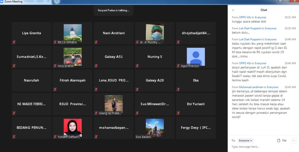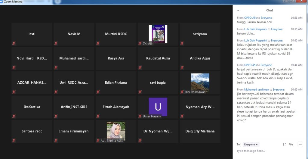 Peserta yang online mengikuti berasal dari Civitas Hospitalia, Rumah Sakit Kabupaten dan rekan rekan Puskesmas.