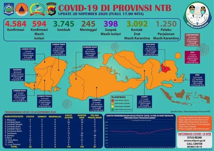 Update Perkembangan Covid 19 di Provinsi NTB, Edisi 20 November 2020