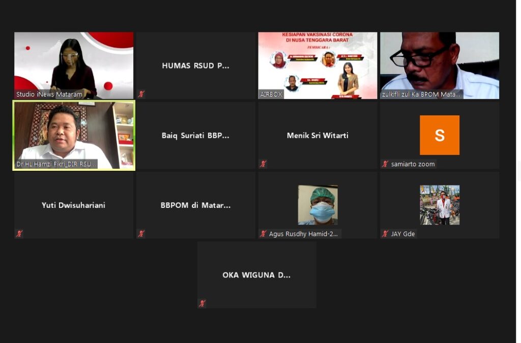 Telah berlangsung Bincang Talk show yang bertemakan Kesiapan Vaksinasi Corona di NTB yang diselenggarakan oleh iNews Mataram secara virtual melalui zoom meeting. (02/12).