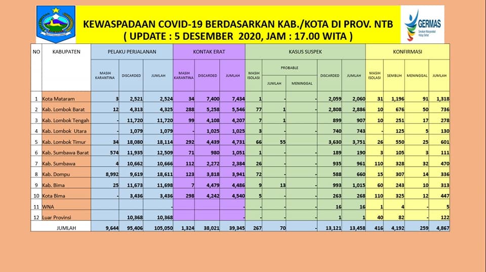 Update Perkembangan Covid 19 di Provinsi NTB, Edisi 5 Desember 2020 December 5, 2020December 6, 2020 admin