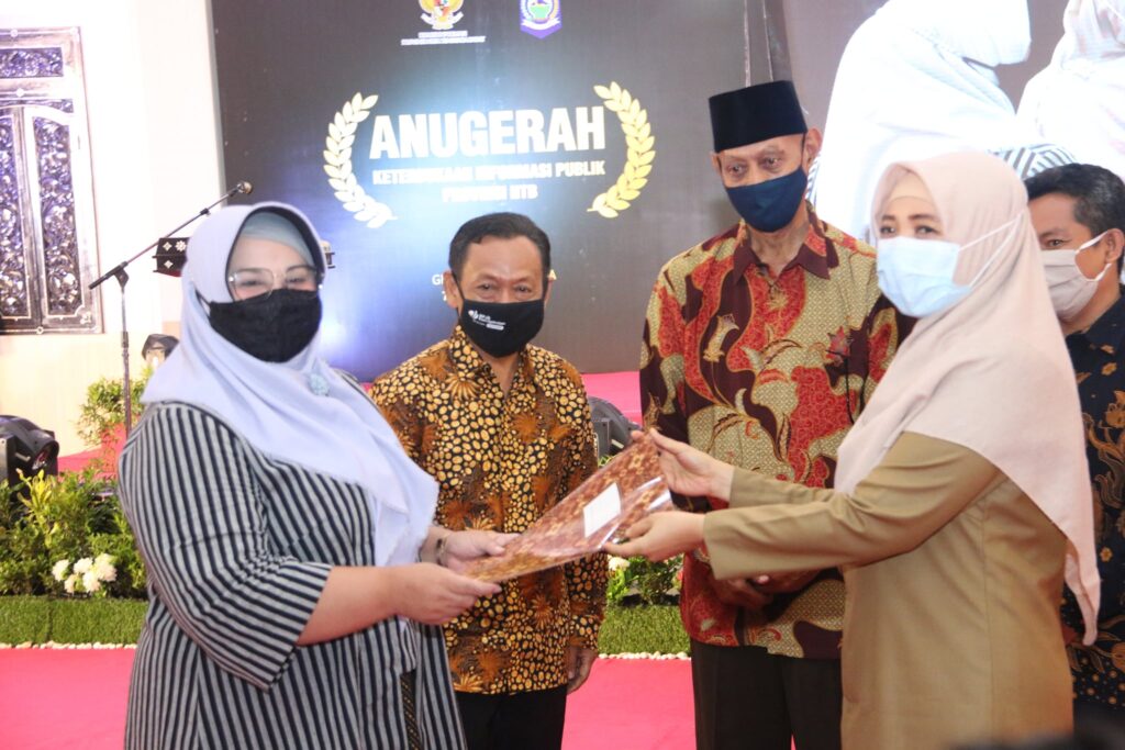 Penghargaan OPD Informatif langsung disampaikan oleh Wakil Gubernur NTB Dr. Ir. Hj. Sitti Rohmi Djalilah, M.Pd. kepada Direktur dr. H. Lalu Hamzi Fikri, MM, MARS disaksikan oleh para Komisioner KI Provinsi NTB dan Para Undnagan di Graha Bhakti Praja (07/12).