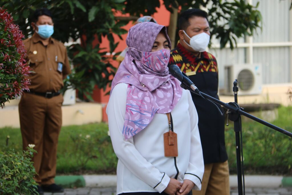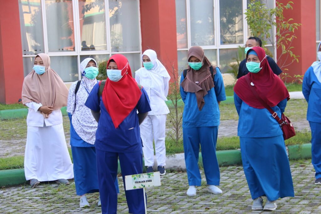 Hal ini ditegaskan kembali oleh Kepala Instalasi Promosi Kesehatan Rumah Sakit (PKRS) dan Kesehatan dan Keselamatan Kerja Rumah Sakit (K3RS), Tina Indriyani, SST.Ft pada apel pagi ini (07/12). Untuk itu peran Petugas Keamanan sangat diharapkan untuk menegakkan ketentuan yang telah diberlakukan tersebut. Hal ini penting untuk memutus rantai penularan COVID-19 di Rumah Sakit. “Jangan sampai pengunjung rumah sakit menjadi kluster penularan baru, tegas Tina. Disamping itu, perlu dukungan semua pihak termasuk Para Kepala Ruangan untuk melaporkan jika terjadi penumpukan pengunjung di ruangannya masing-masing.