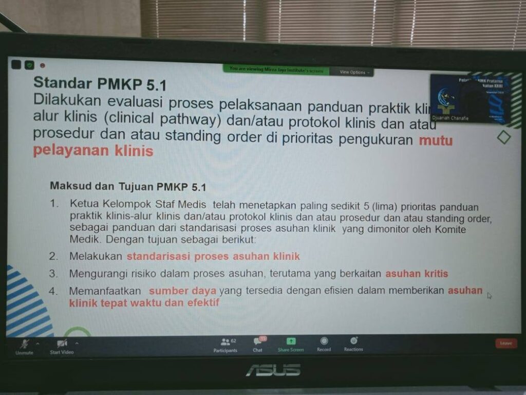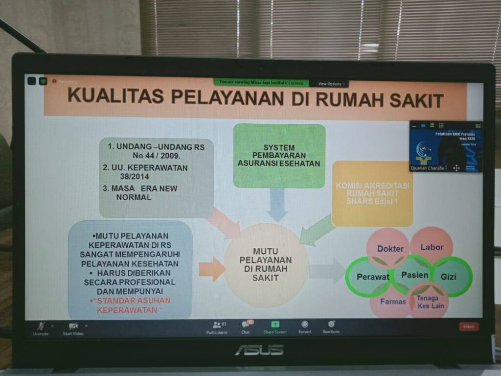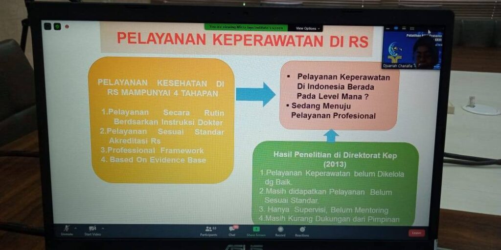 Webinar menyusun standar asuhan keperawatan dilaksanakan secara on line yang diselenggarakan oleh Lembaga Pelatihan Jaya Institute Indonesia.