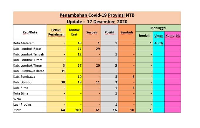 Update Perkembangan Covid 19 di Provinsi NTB, Edisi 17 Desember 2020 December 17, 2020December 20, 2020 admin Selengkapnya di : https://corona.ntbprov.go.id/