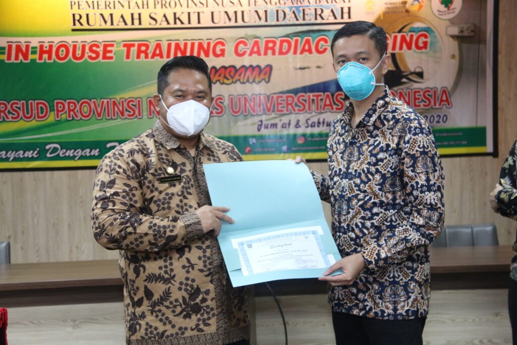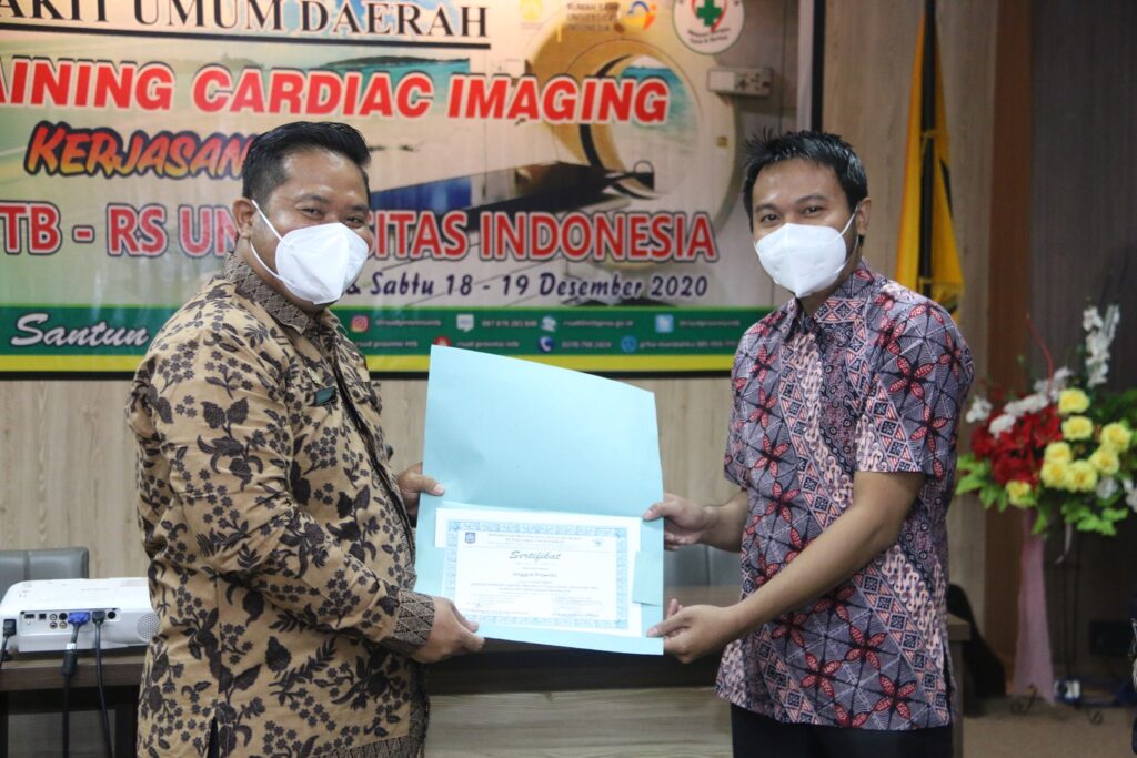 Pada kesempatan membuka In House Training Cardiac Imaging yang terselenggara atas kerjasama Rumah Sakit Umum Daerah Provinsi Nusa Tenggara Barat dengan Rumah Sakit Universitas Indonesia, Direktur dr. H. Lalu Hamzi Fikri, MM, MARS mengapresiasi Panitia Penyelenggara Pelatihan yang langsung merespon untuk persiapan kolaborasi layanan antara Instalasi Radiologi dan KSM Jantung (19/12).