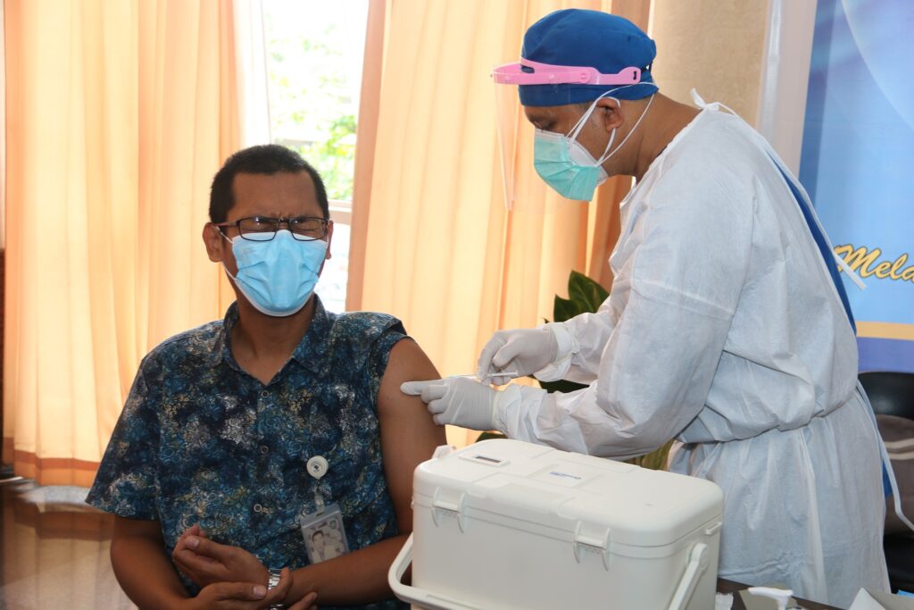 Sebagai salah satu ikhtiar memutus rantai penularan COVID-19, Pemerintah melakukan Vaksinasi dengan prioritas sasaran saat ini adalah Para Tenaga Kesehatan yang bekerja di Fasilitas Kesehatan.