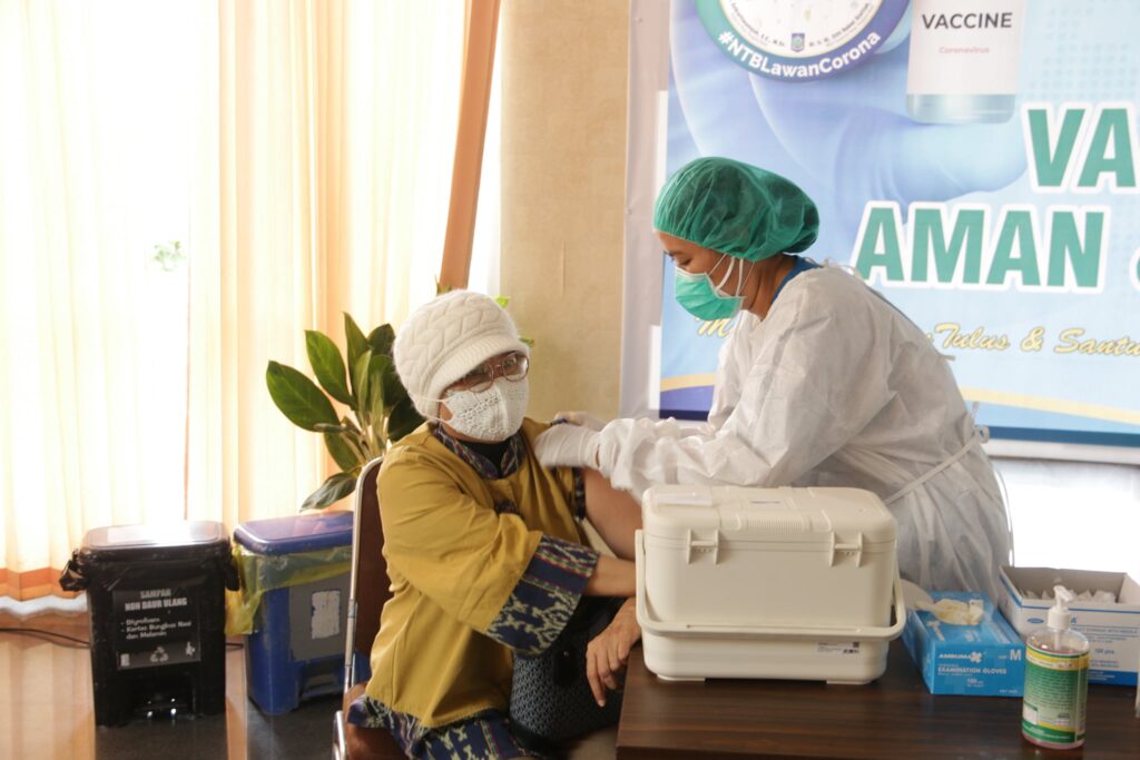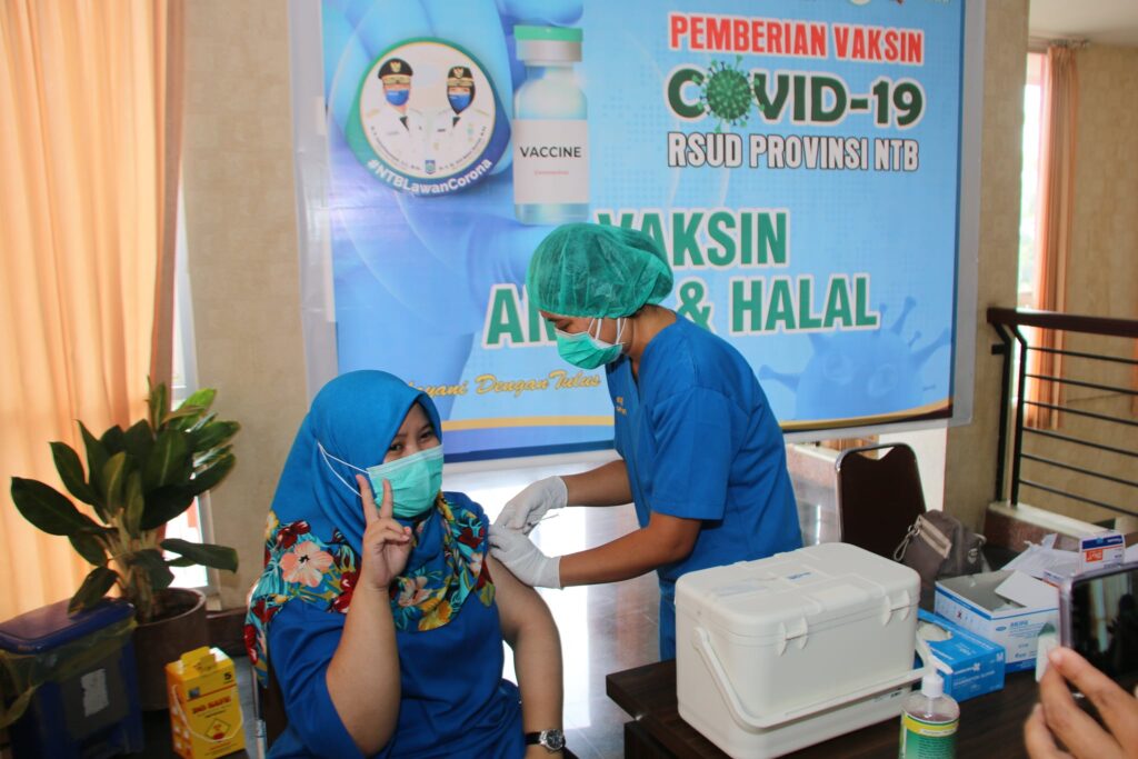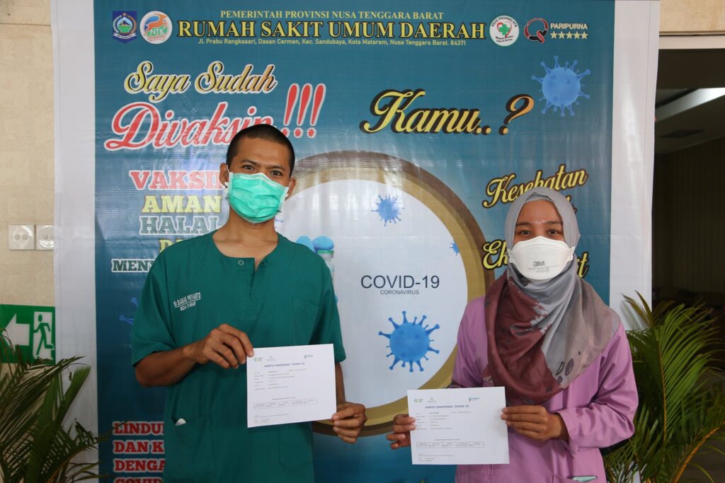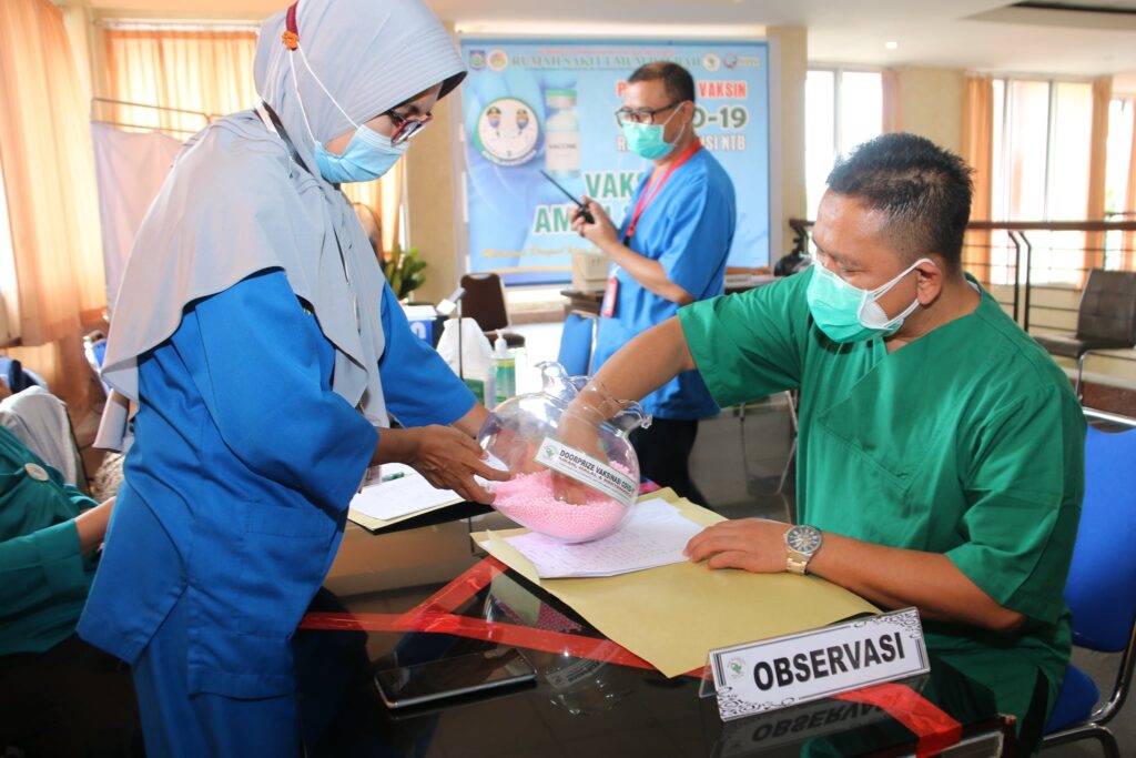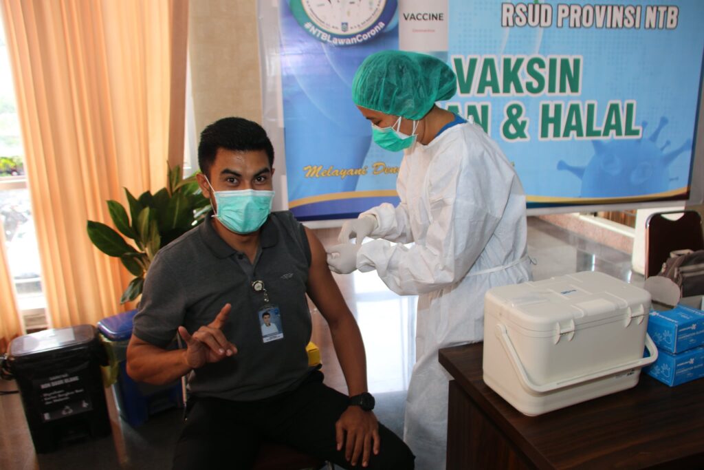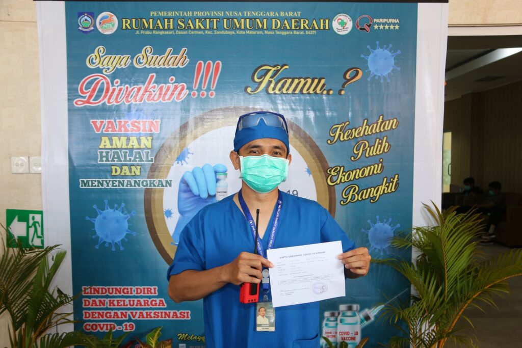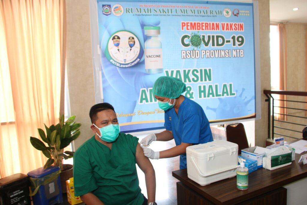 MATARAM. (19/01). Pelaksanaan Vaksinasi COVID-19 bagi Tenaga Kesehatan yang berlangsung di Rumah Sakit Umum Daerah Provinsi Nusa Tenggara Barat memasuki hari ketiga berjalan lancar.