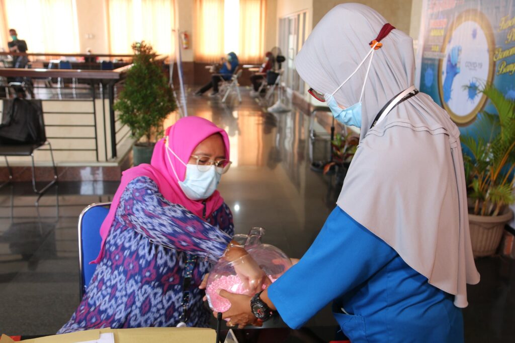 Untuk memeriahkan dan memberikan keceriaan bagi penerima vaksin, Manajemen Rumah Sakit menyiapkan doorprize bagi yang beruntung. Selamat