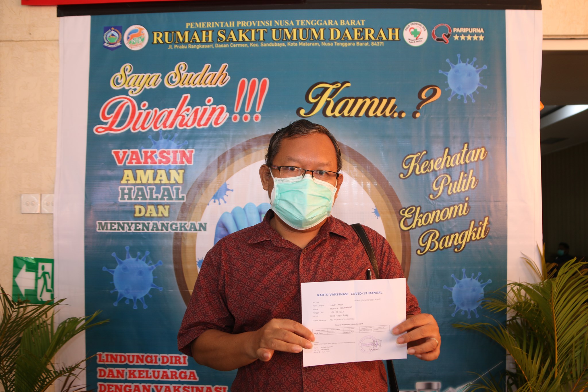 Terlihat Wadir SDM dan Diklat, dr Oxy Tjahjo Wahyuni, Sp.Em dan Wadir Umum dan Keuangan, Hamid Fahmi A, SE, Mec, Dev menerima vaksin COVID-19 hari ini diikuti oleh beberapa Pejabat Struktural, Kepala Instalasi dan Tim Medis serta Tenaga Kesehatan Rumah Sakit Umum Daerah Provinsi Nusa Tenggara Barat