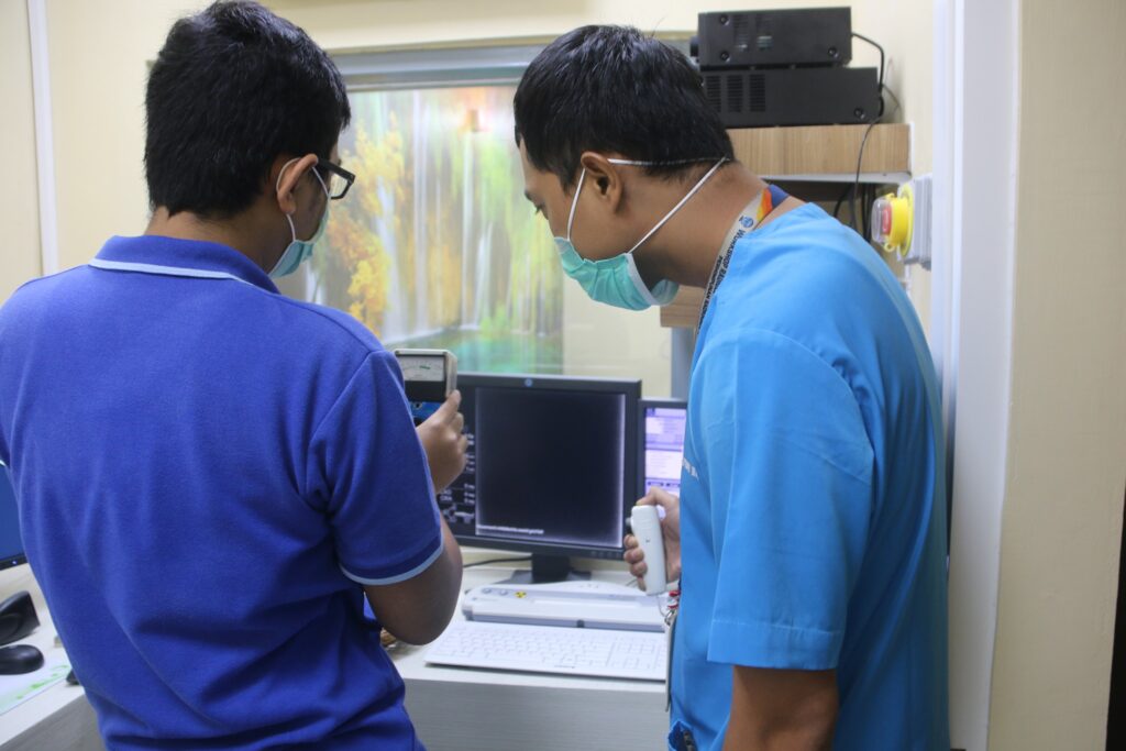 Untuk mengawal proses tahapan tersebut, Kepala Instalasi Radiologi, dr. Dewi Anjarwati, Sp.Rad.,M.Kes menginstruksikan kepada Petugas Proteksi Radiasi Medis Tingkat 2 (PPR medik 2) untuk mengawal proses pengukuran paparan radiasi ruangan yang dilakukan oleh Tim Tekhnis dari Vendor modalitas tersebut.