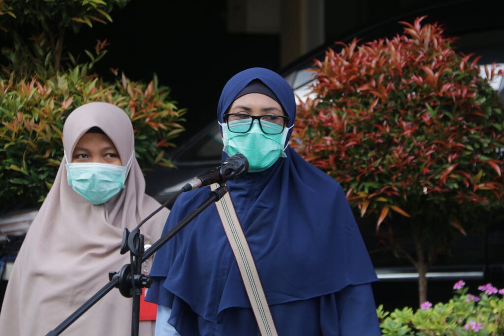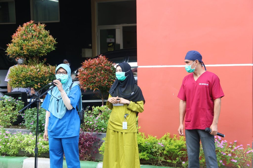 Di akhir sesi, seperti biasa setiap Hari Jumat ada pembagian doorprize bagi peserta apel yang beruntung dapat menjawab kuis yang diajukan Direksi. Bingkisan disampaikan langsung oleh Plt Direktur dr. Hj. Nurhandini Eka Dewi, Sp.A, MPH.